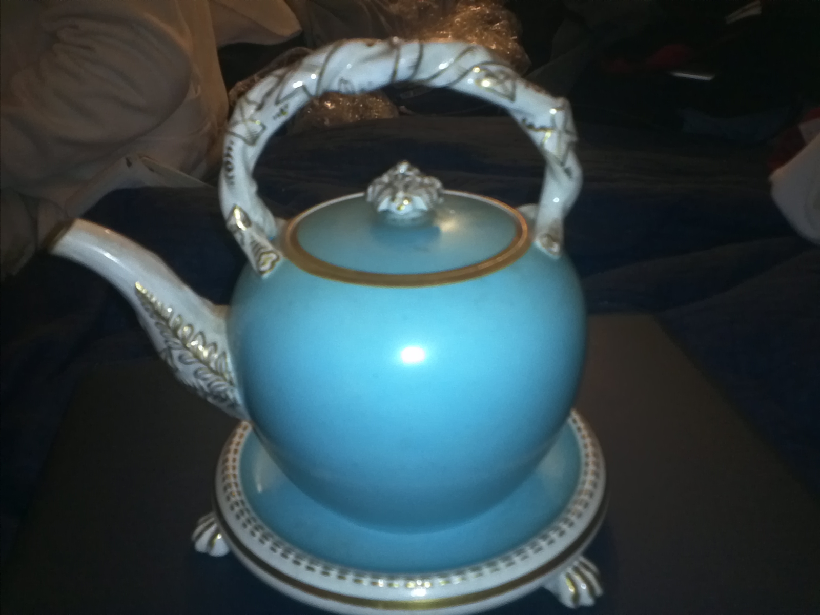 Re: Wedgwood majolica pastel blue teapot and saucer