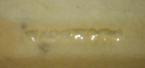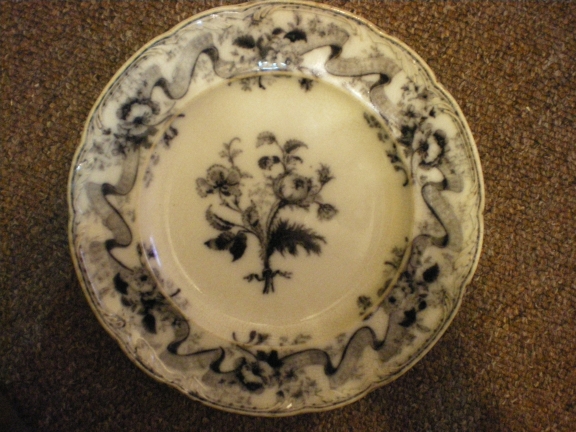 Patterned plate with a Wedgwood imprint on the back also a small letter R or P or possibly B (unclear) also kite mark indicating 3rd August 1846 (I think)