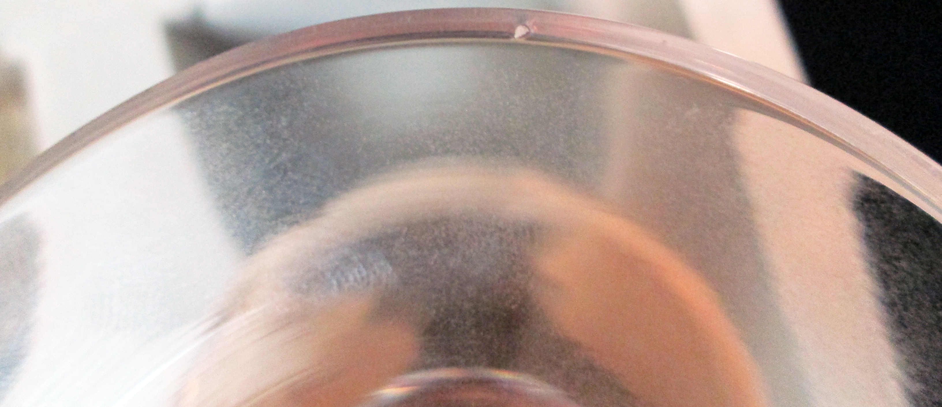 One goblet is in mint/perfect condition while the other has 2 small, what i believe to be manufacturing flaws. There is an open bubble on the foot and a very small, roughly 3/16" line or abrasion near the center. Attached photos show both issues.