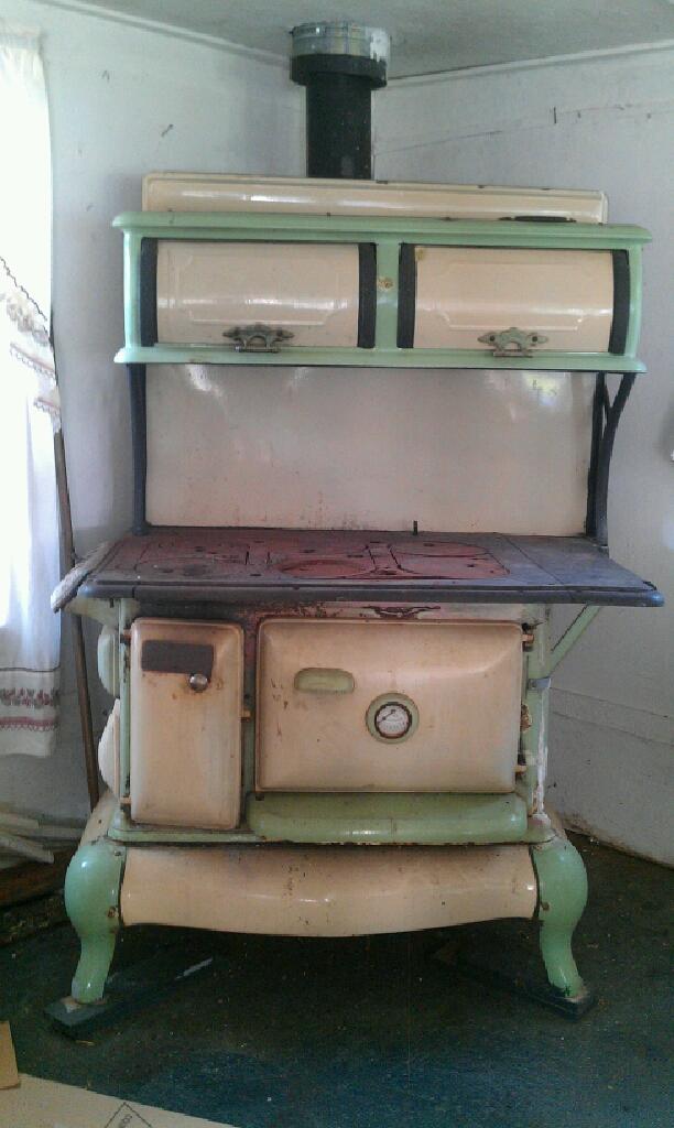 The stove is green and white and still works.