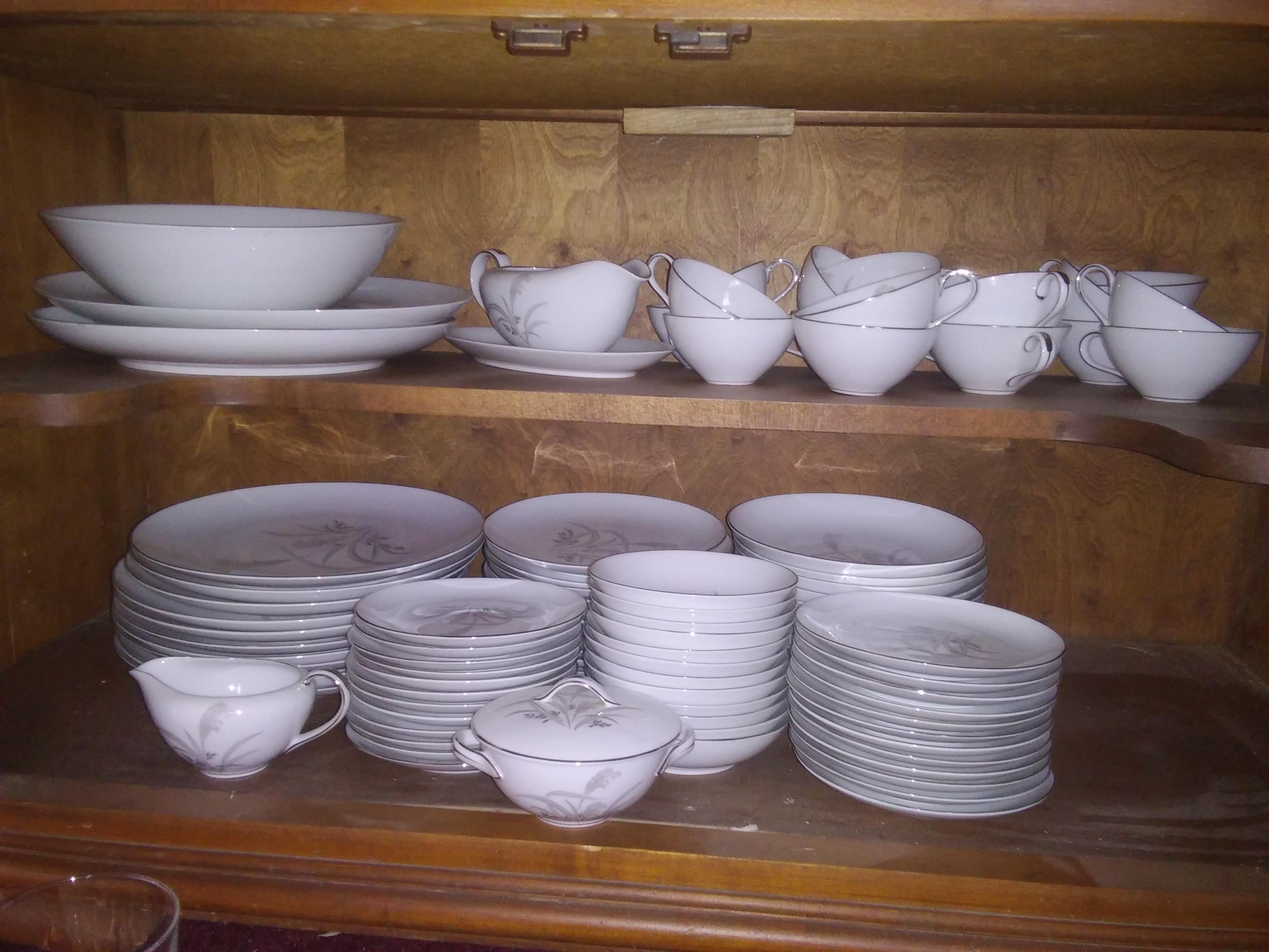 I bought a house and found a china set. All together there are 94 pieces. I dont know anything about it was trying to figure out if it was worth anything. Its missing 2 dinner plates but other than that would be able to serve 12.