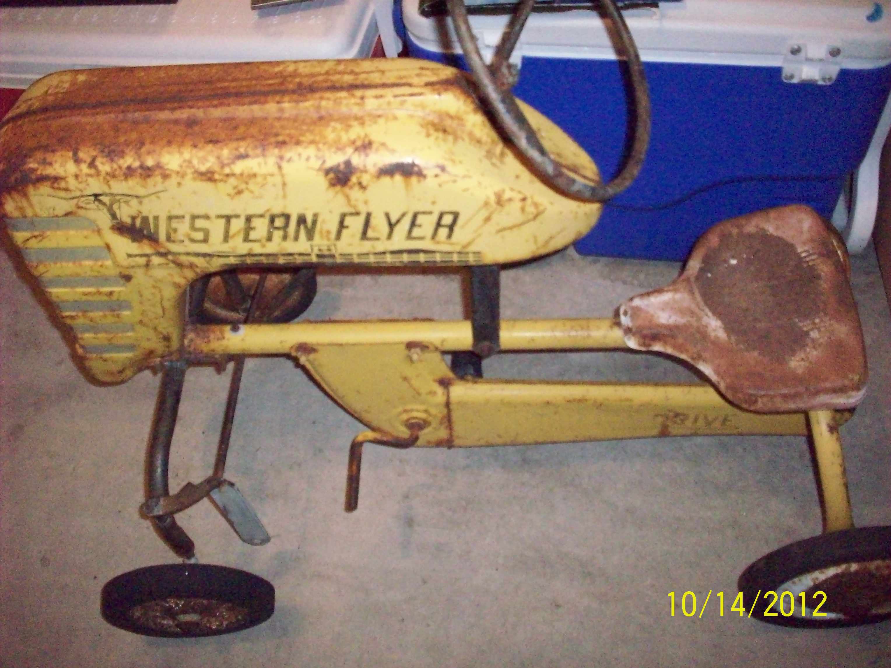 I recently aquired a Western Flyer pedal tractor from a friend. The tractor is pretty rough but i think it has potential. It is a #517, i have a question concering the seat and steering wheel, i want to know if those are the original seat and steering wheel or if they were replaced. The ones on the tractor i have are metal and the ones i have seen online are plastic. Could anyone please tell me if they were originally metal or plastic. thank you so much.