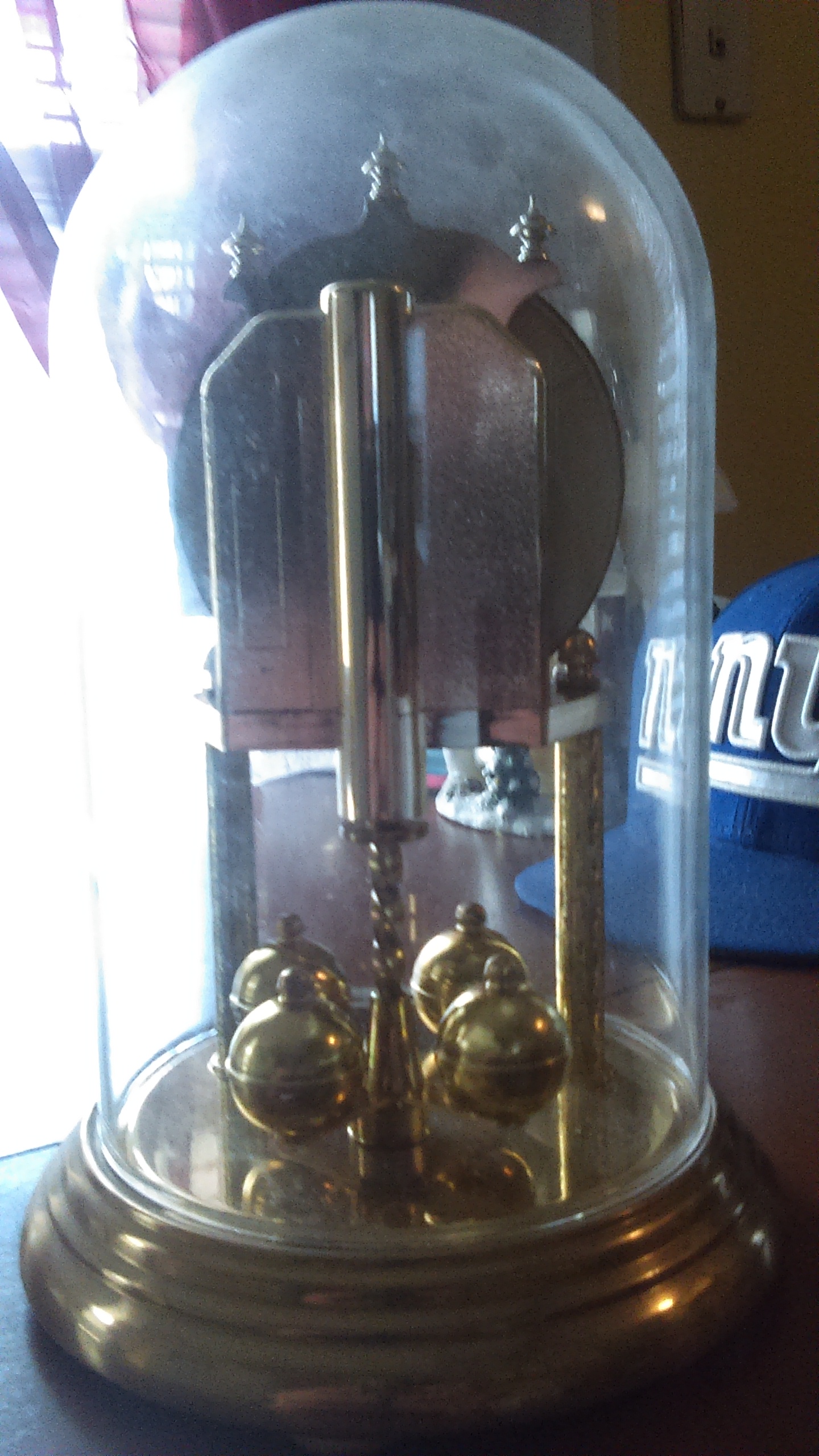 So I found this clock at a consignment shop and really liked it, as I thought it went good with our bedroom decor at the time. Never really inspected it until just recently. It is a battery operated clock that has 4 spining balls on the base. From what i have searched, this is considered an "Aniversary" Clock. I have not been able to find a maker of the clock. All that is inscripted on the bottom and the back is W.Germany. On the front bottom of the clock face it is also inscripted made in germany. No Manufacturer or maker and no other markings that would indicate who made this beautiful clock. It is constructed of mostly plastic except for the clock face and the two legs, which I believe is made out of metal or possibly brass. I would love to know more about this clock and how much it may be worth. Thank you for your time.