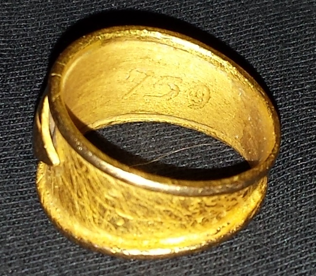 Several years ago while walking near a beach in Pickering ON my wife found this item. Its far to small to be a ring. We took it to a local jeweler who tested it and sdaid it was indeed the purest 18k he has ever held. And a facinatingly ol piece but he couldnt tell me any more about it historically. Several people at our museum were also fascinated but at a loss as to what it was or value. I'm HOPING someone here can assist us. I'd really like to know more about it.