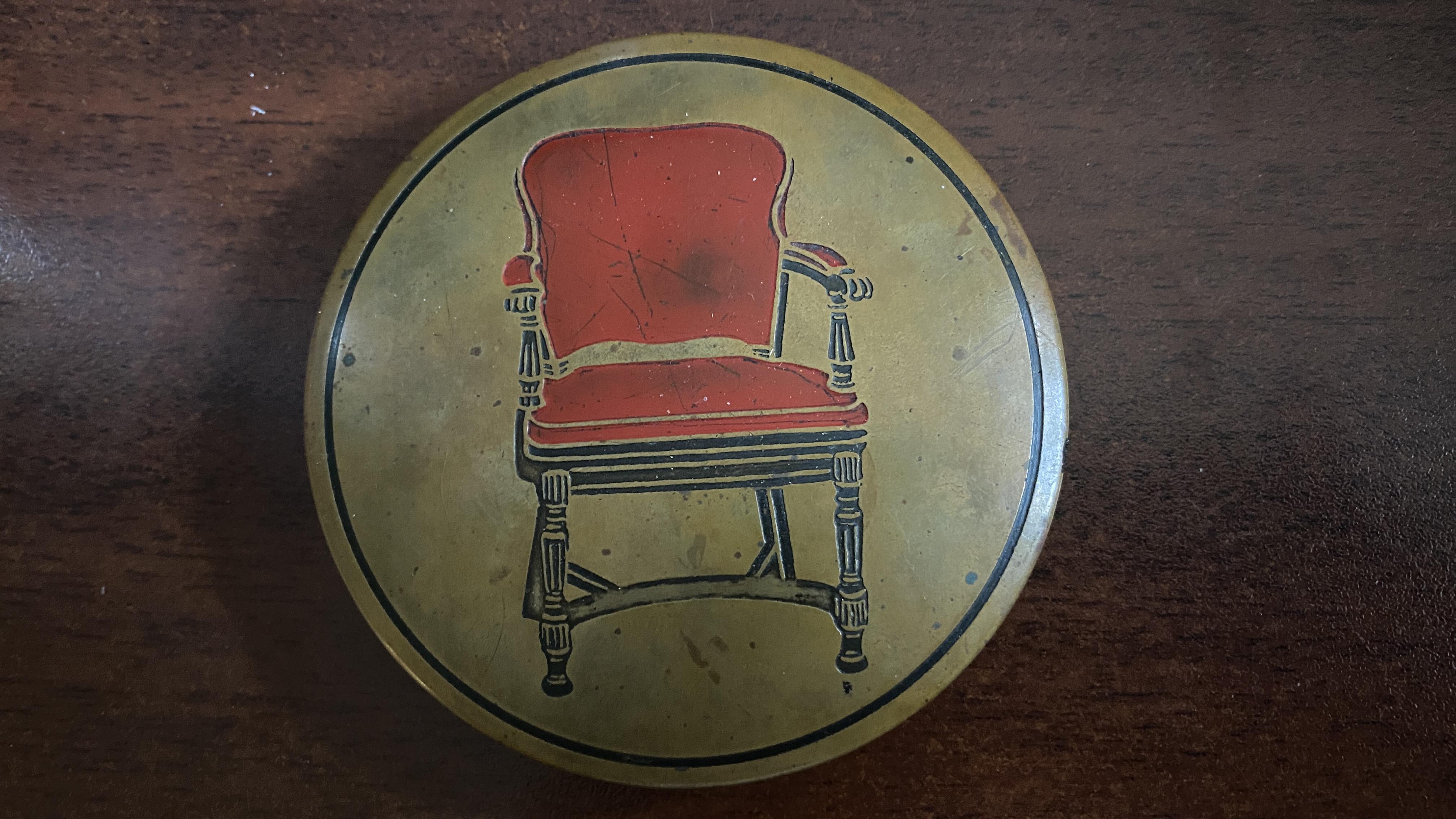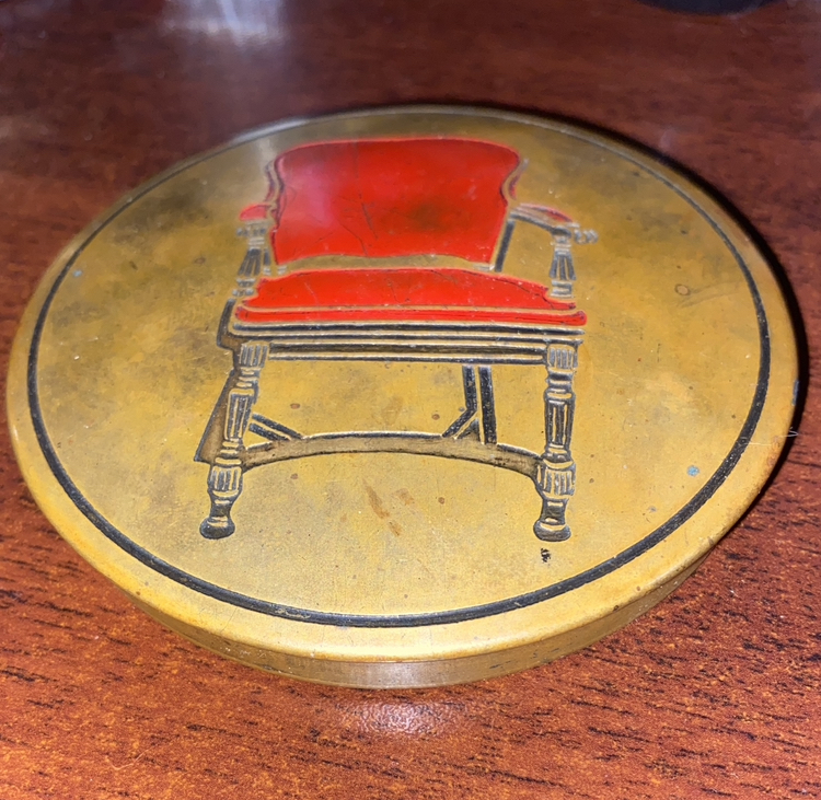 With an Engraved chair on the front and where the cushions would be it was hand painted in red.
