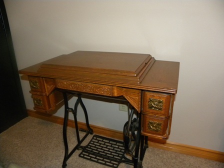 The cabinet is carved & in perfect shape. The sewing machine looks fine, but has no additional parts.