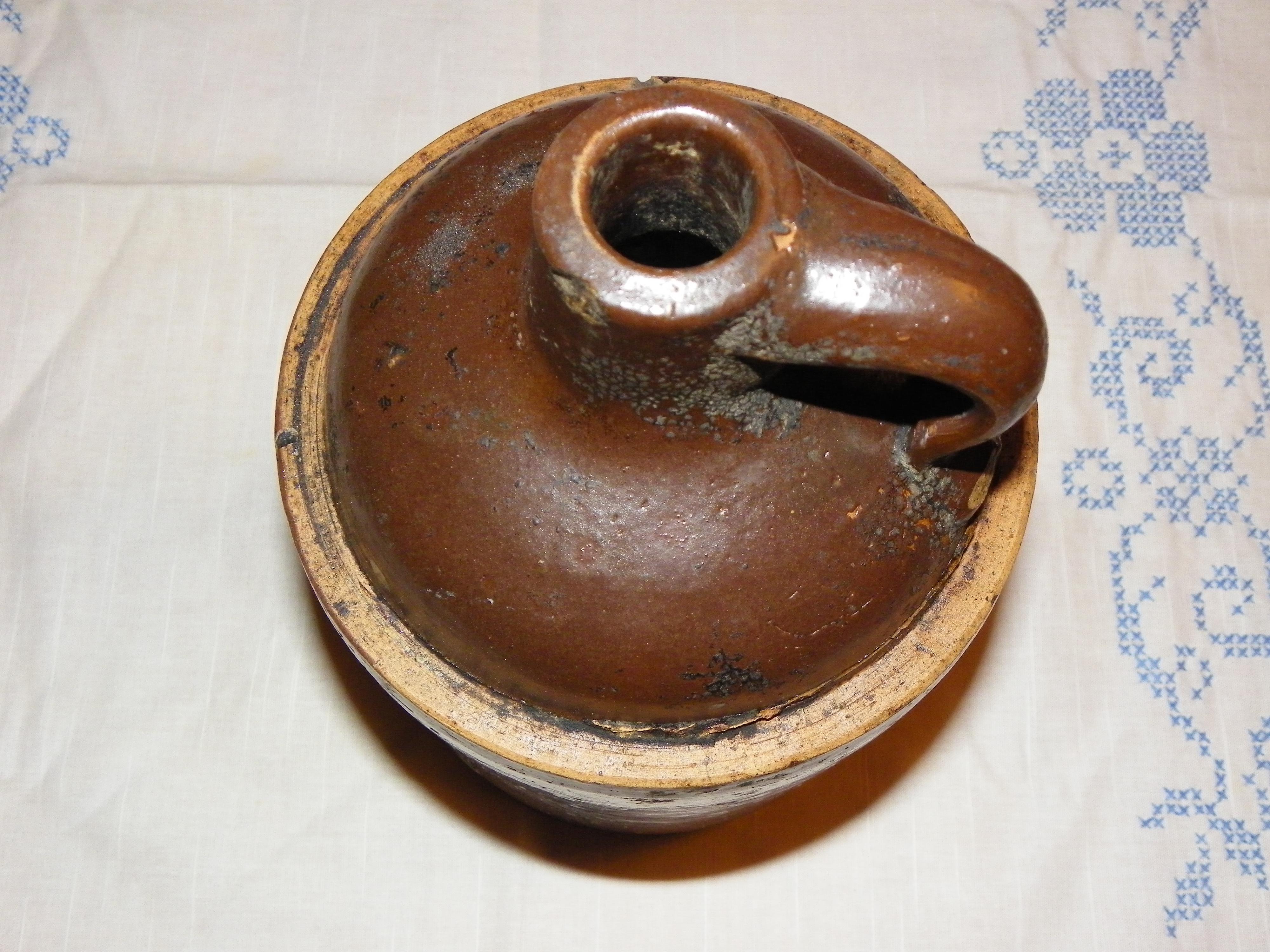 "Funnel top" Jugs like this tend to be generic mid to late 19th century examples, they were made all over the Eastern United states, many of them carry no markings at all to identify a maker. These days comparable jugs often sell for less than $100.00.