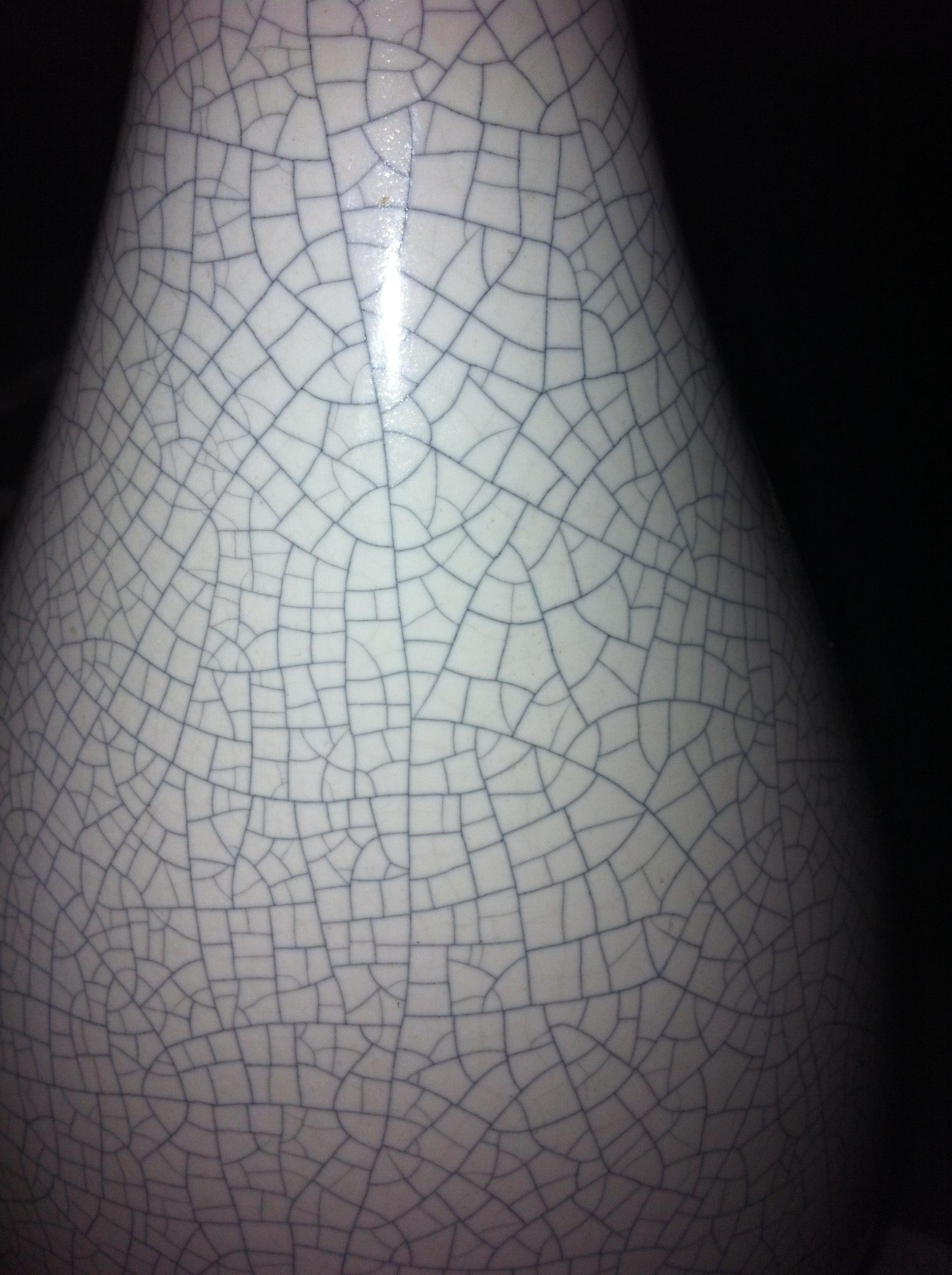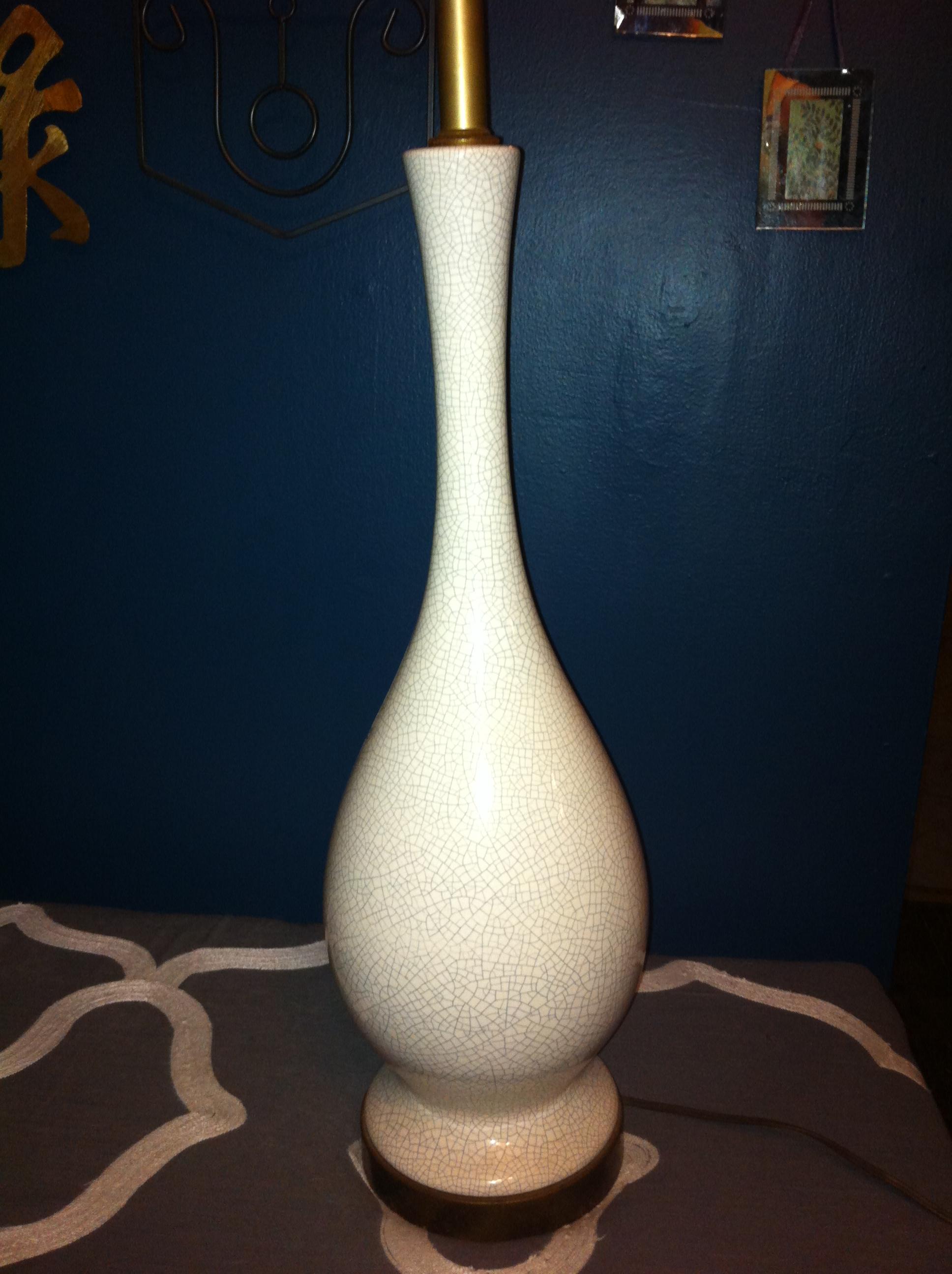 I have 2 lamps, white with a blue line crackle. 23" from base to top of neck and 24" at widest point.  I can see no markings on bottom. Can you please give me an idea on the value.