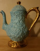 White and turquoise ceramic vase, diamond shaped on pedestal