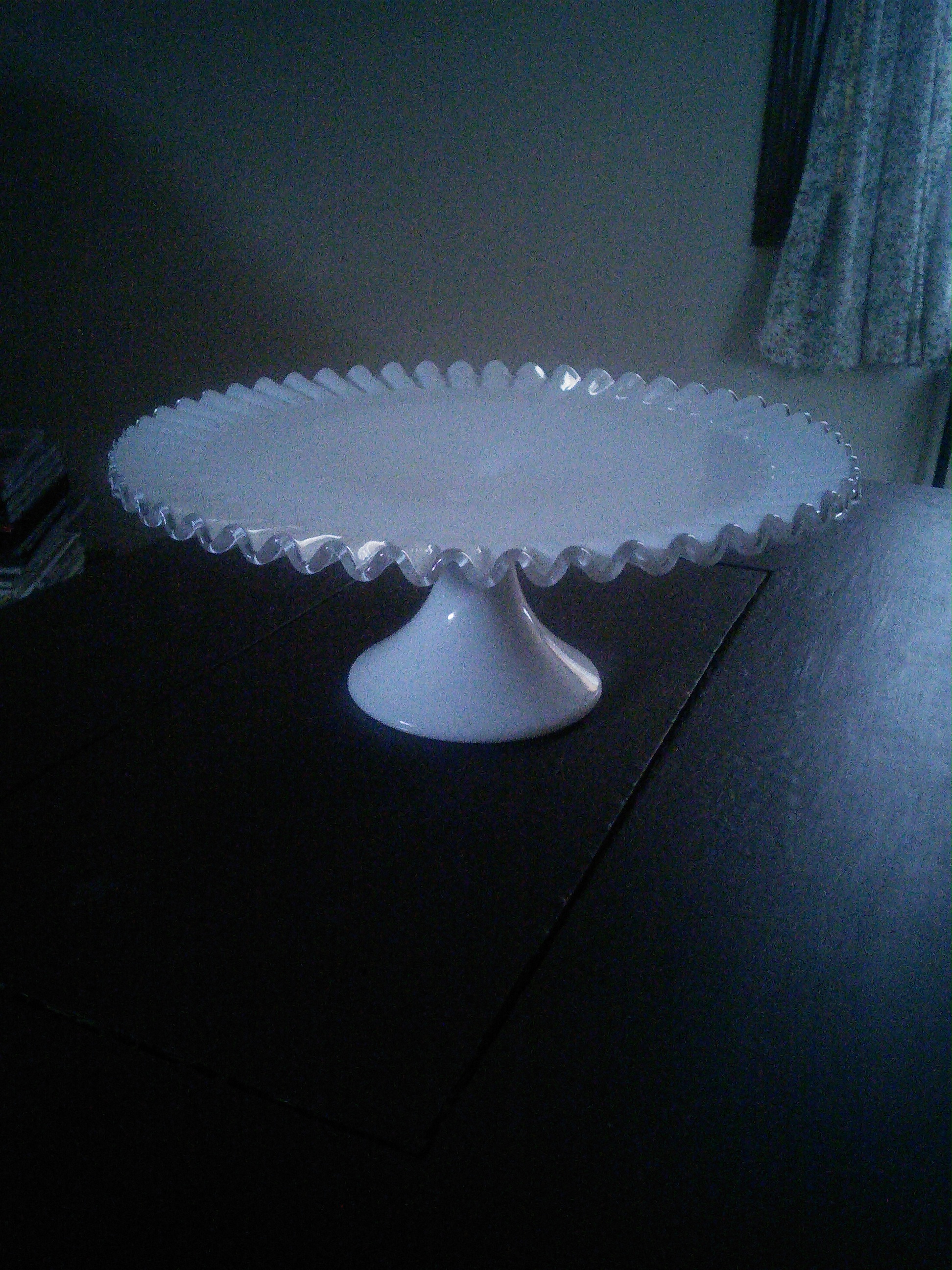 White with crystal edged fluted cake stand