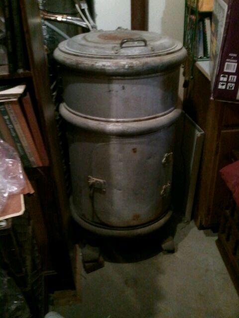 It a white frost refrigerator from the early 1900's, it's in decent shape would need to be restored does not have water bottle option, has all three shelves