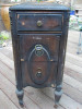 It has a drawer and doors and strangely enough, looks like you could lift the top and find a stereo inside, but it doesn't lift and there isn't a stereo. I think it looks that way because the doors look like speaker doors from the '60's.