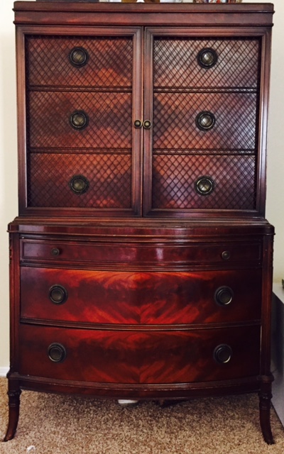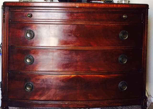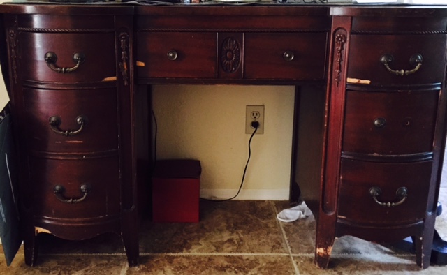 Full set - head board, foot board, 2 dressers and vanity. Vanity has paint chips and small dresser has a leg that has been damaged but fixed. Otherwise in pristine condition.