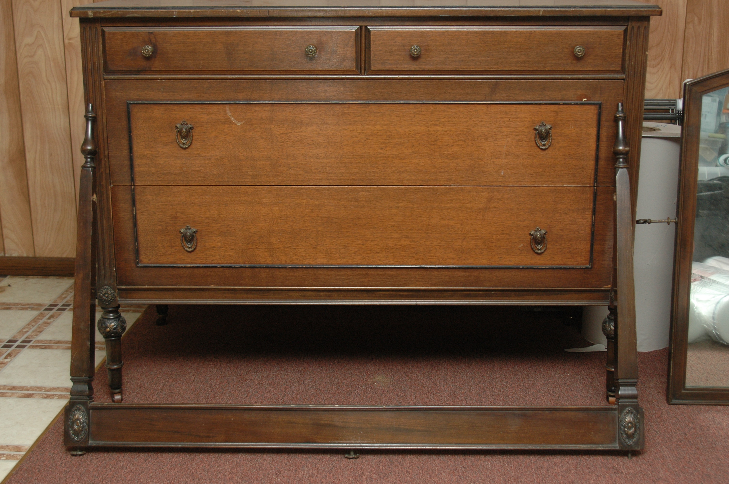I inherited this bed and chest of drawers with mirror.  I am interested in selling it, but have no idea of its value.  I am a private individual.  The furntiure shows some wear.  I have the original wooden wheels and all other original components.  The label inside the drawer shows The White Furniture Company, Mebane, NC