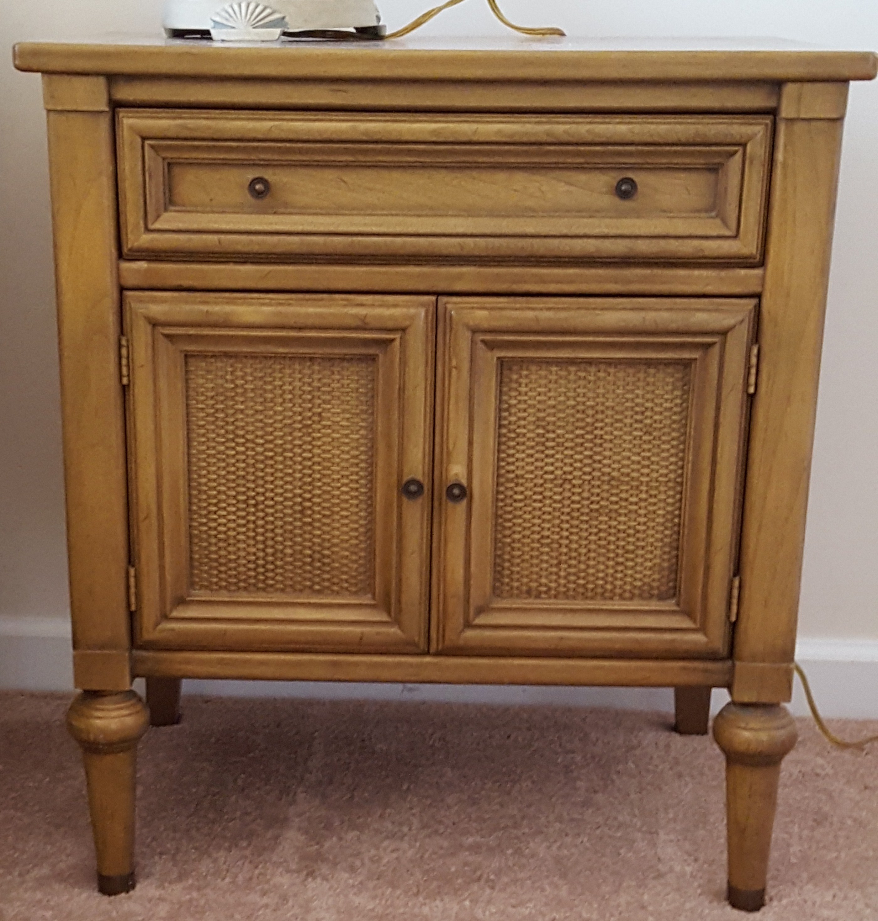 I have two matching nightstands from the White Furniture company, which is stamped on the inside of the drawers. Dimensions are 16x22x25h roughly. They are in pretty good condition. Look to have a basketweave pattern on the drawers. I was wondering what they were worth? My parents had them for years. I have other pieces as well.