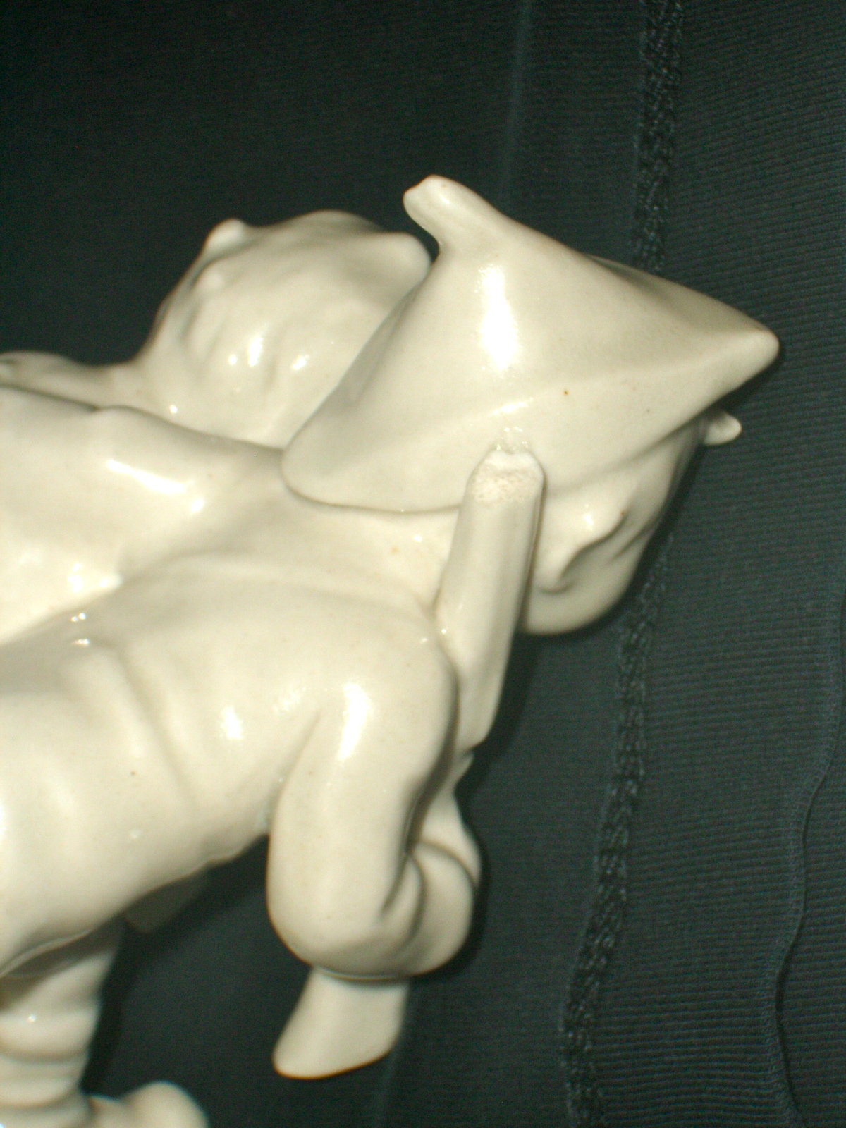 I cannot find any information about this Hummel figurine and was wondering if anyone had heard of it. My Grandmother was German, and lived in occupied Germany after WW II. She collected Hummels while she was there, directly from "The Nuns" she would say. This one, and a few others like it, she said were mistakes, but they were her favorite type.
