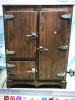 Ice box refrigerator. My mom picked this up at an auction in the 1970's. The emblem at the top is 'White Mountain Grand.'
