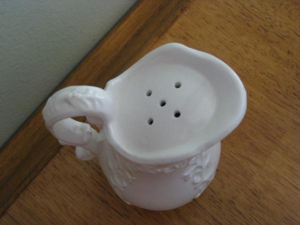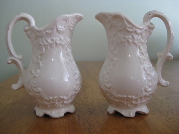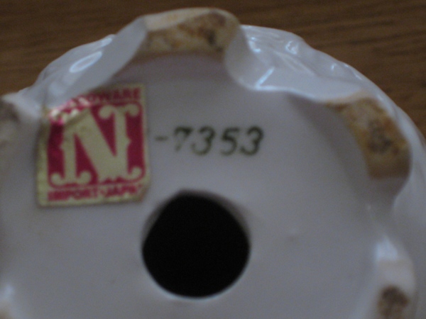 white porecelain salt and pepper shakers, with gold and red foil sticker "Napcoware, Import - Japan" 7535