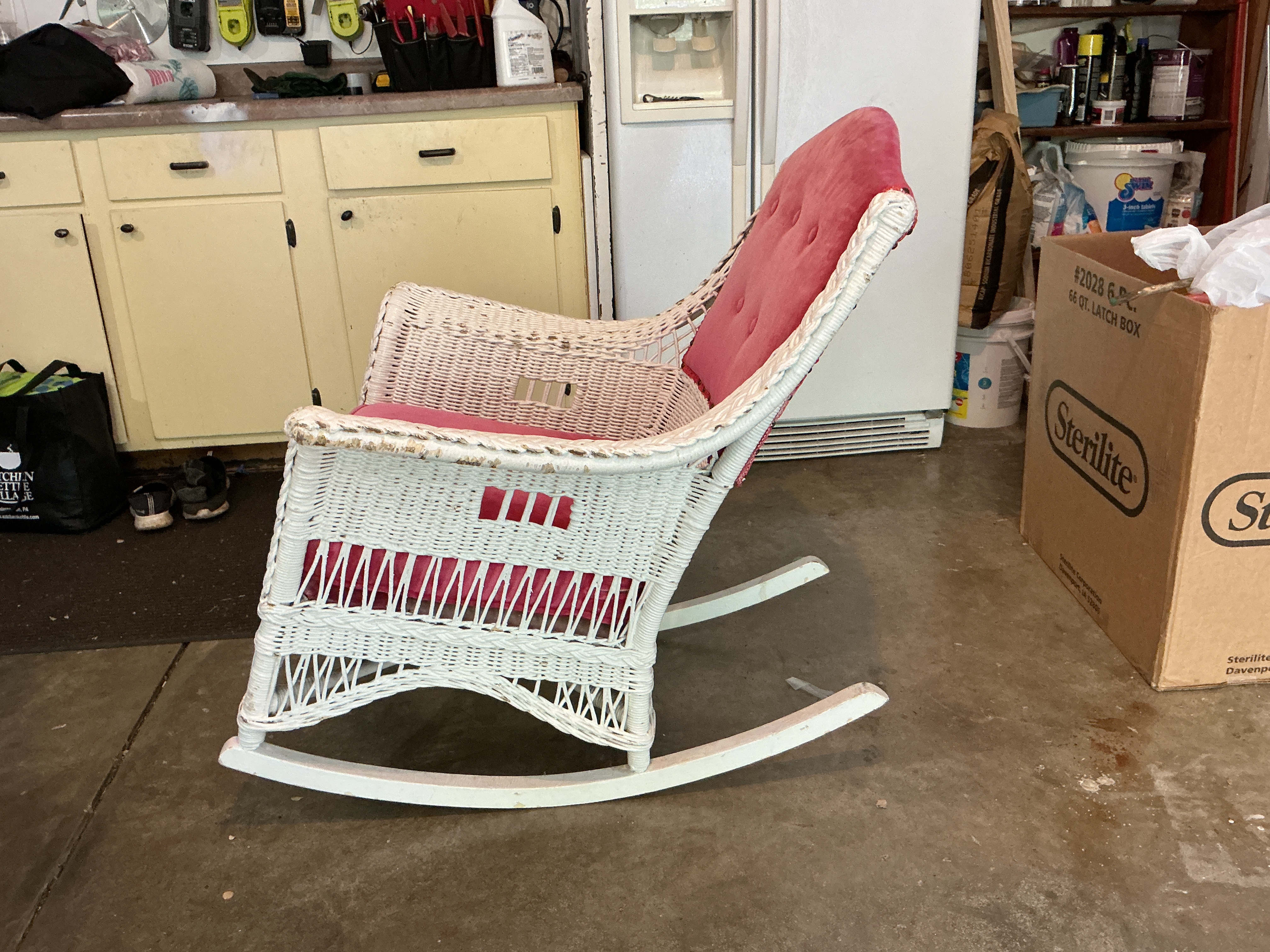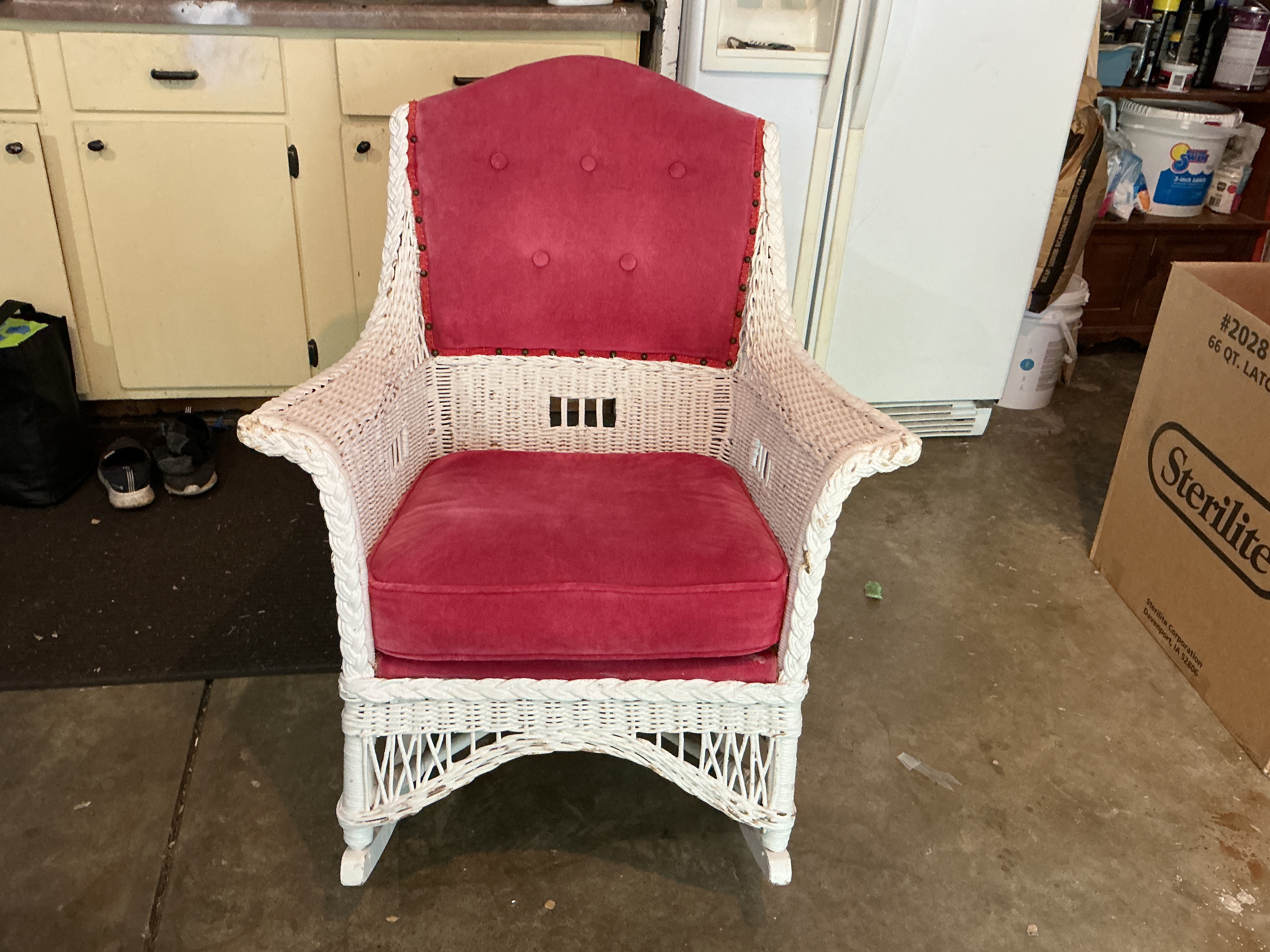 White Wicker Rocking Chair. Dating to Late 20th century. Unlock the full appraisal for complete details.
