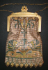 Gold mesh evening bag with art deco colored design in pink, blue and brown. No lining. Whiting & Davis insignia on left side of purse. Different from all of the bags I have reviewed so far. No damage other than aging. The bottom of the bag is an 8 point design consisting of 2 panels.