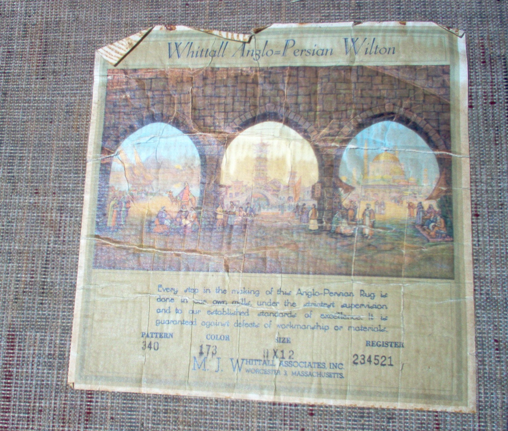 This persian rug was my husbands grandmothers and was in her sitting room since before 1960, it was stored since her death in 2001. The tag gives many details including the pattern #340, color #173, 11x12, register #234521.