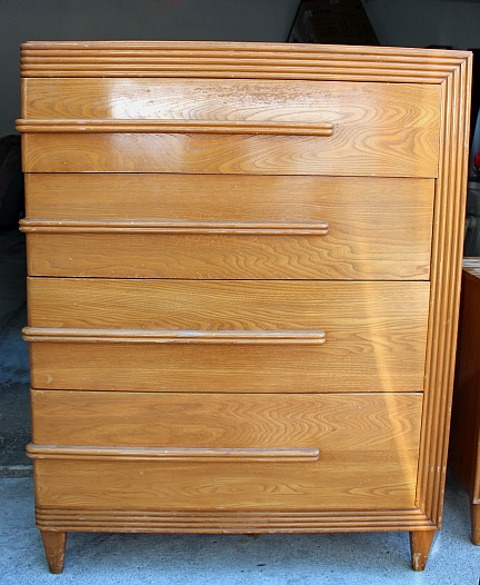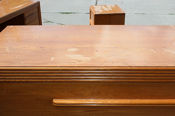 Set of 4 pieces of Widdicomb furniture, appear to be art deco or from the 1930s, have a desk, dresser, chest, and nighstnad, all in good shape, need refinishing