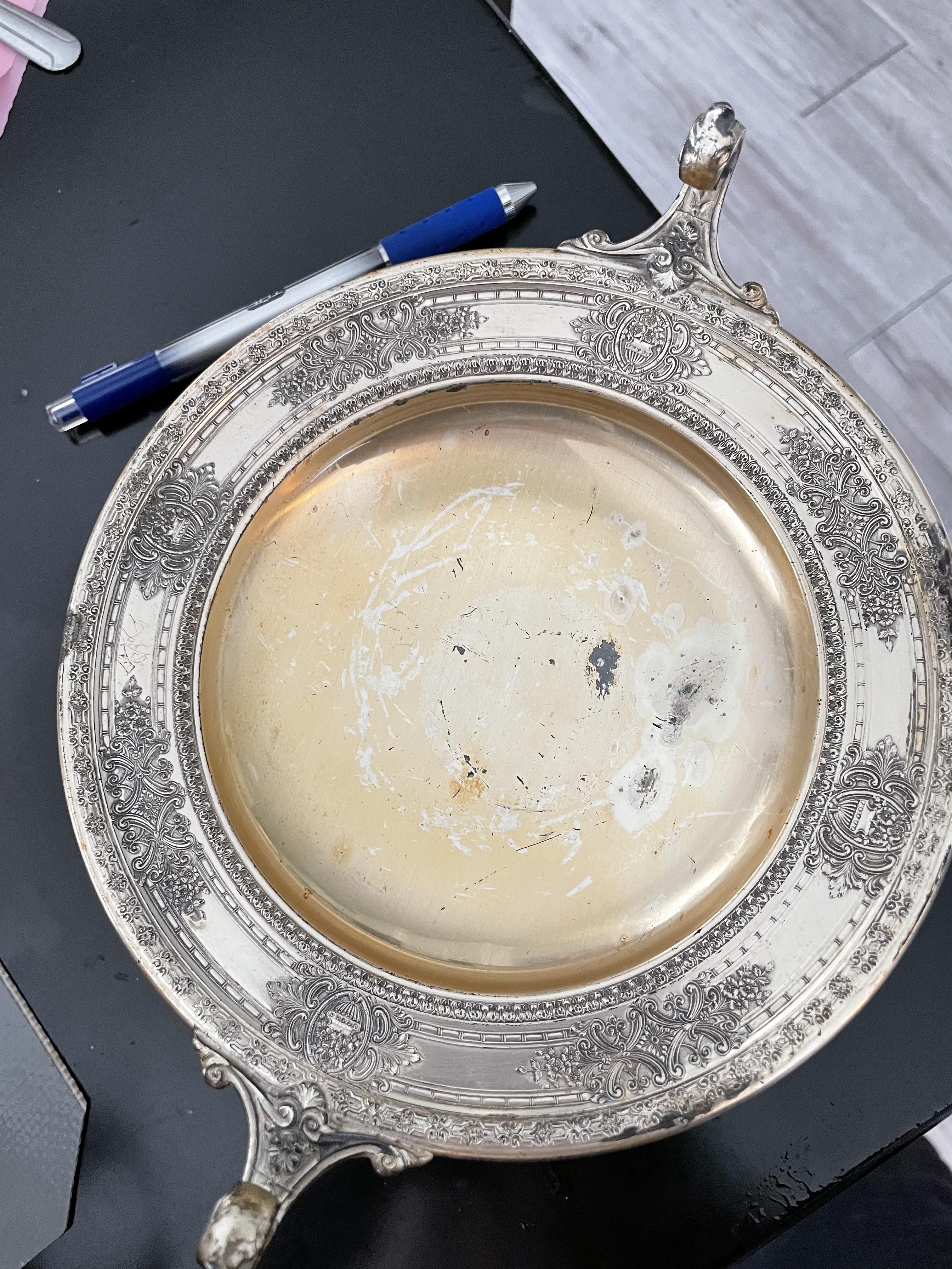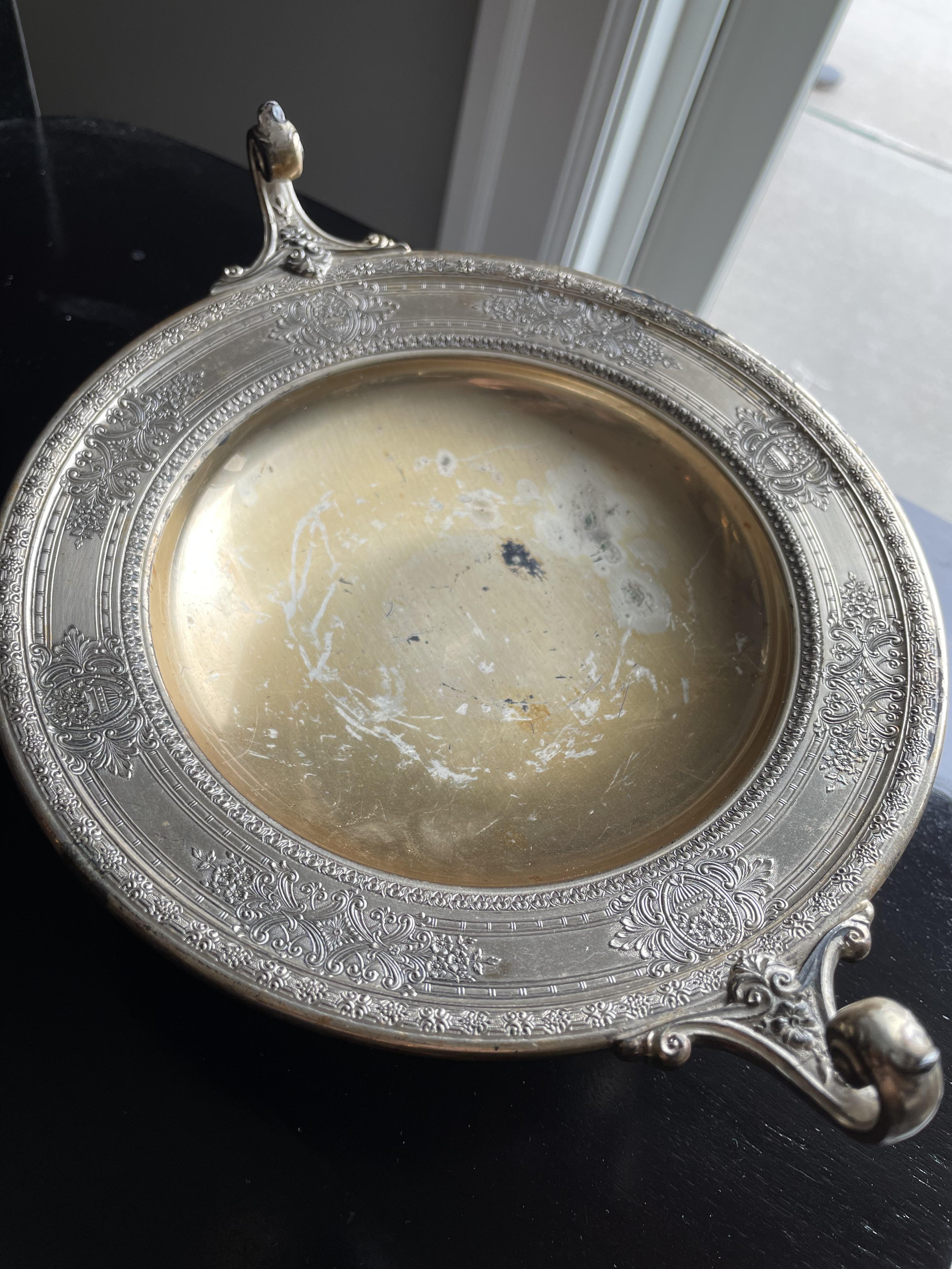 Candy dish? Ornate w curled edges. In my family over 50 years. Markings: WM Mounts, Wilcox SP Co int’l. 157N and hand-etchedB2715/34
