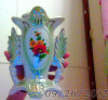 The piece is 8" tall by 5" wide, and has a beautiful semi-matte drip glaze in ochres and greens, It still has a partial paper label attached to the top tier which says: "WILE SONS & CO Inc, SOLE AGENTS FOR THE USA, IMPORTERS NEW YORK NY" It's in excellent condition, with no chips, cracks, or crazing.