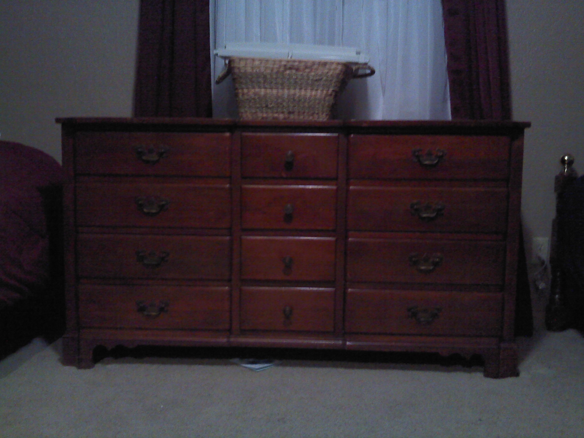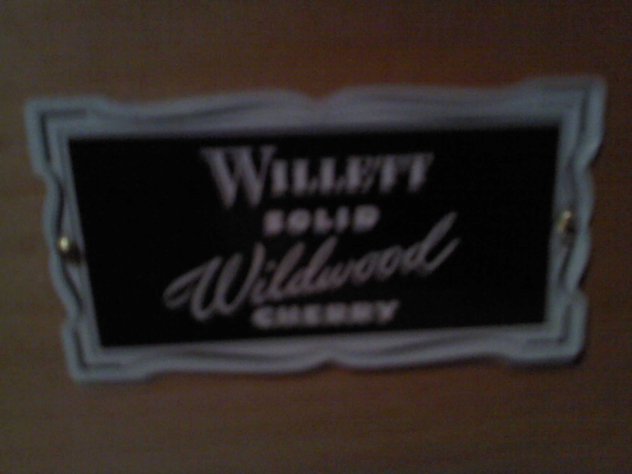 This antique cherry wood dresser and mirror set was manufactured by Willett. It is in good condition, and was built using high quality materials and craftsmanship.