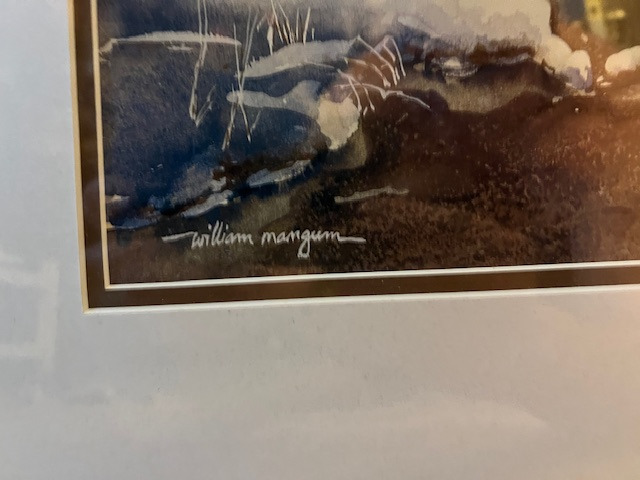 William Mangum Watercolor Painting. Made by William Mangum. Materials: Watercolor on paper. Estimated value: $200 – $300. Condition: Very Good. The market for watercolor paintings is currently stable with moderate demand.