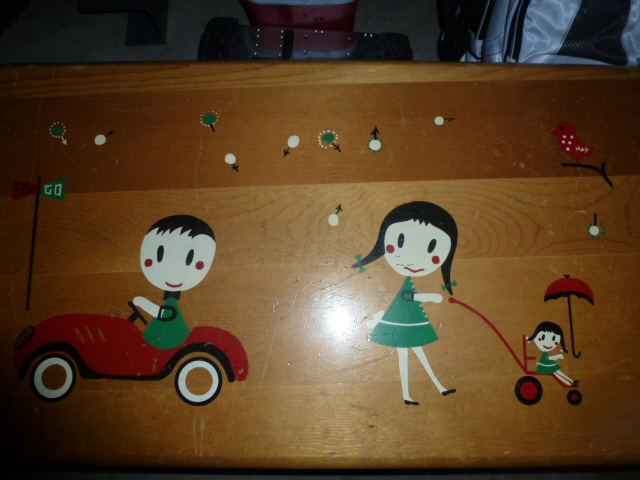 it is a toy chest manufactures in america. thats all i know. i got on hee hoping someone would be able to tell me something else about it. date maybe? what its estimated worth is? i was givin it to use for my daughters toys. I thought about refinishing it but if its worth something the way it is, id rather leave it original.