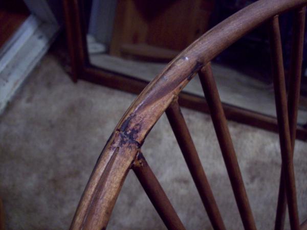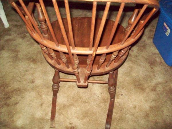 This rocker has a few small blemishes, I have not seen a windsor rocker without the additional higher back, wondering if this was possibly a chair with the rockers added later. There are no metal screws, or nails in the piece.