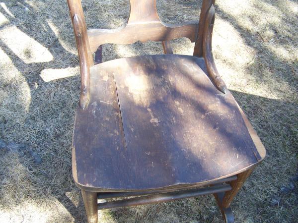 The chair is in good condition, no cracks or broken parts. The only issue is with the seat, the veneer has gotten damp and has started to peel. From what I've learned water solluble glues for veneers weren't used until after WW II. This would date the chair prior to the 1940's. My grandmother was born in 1906 if this was bought as a wedding gift that would put it in the 1920's.