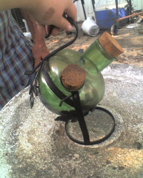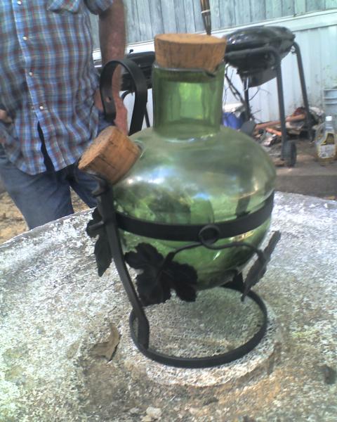 Friend bought this item for three dollars off someone and when he got offered $50 for it he wondered about it. took it to a winery and they have never seen anything like it. its handblown glass and the steel has been welded. it has a blown in chamber for ice and it tip via a handle. it has no markings to indicate who made it anywhere on it. Any help or referrals will be greatly appriciated.