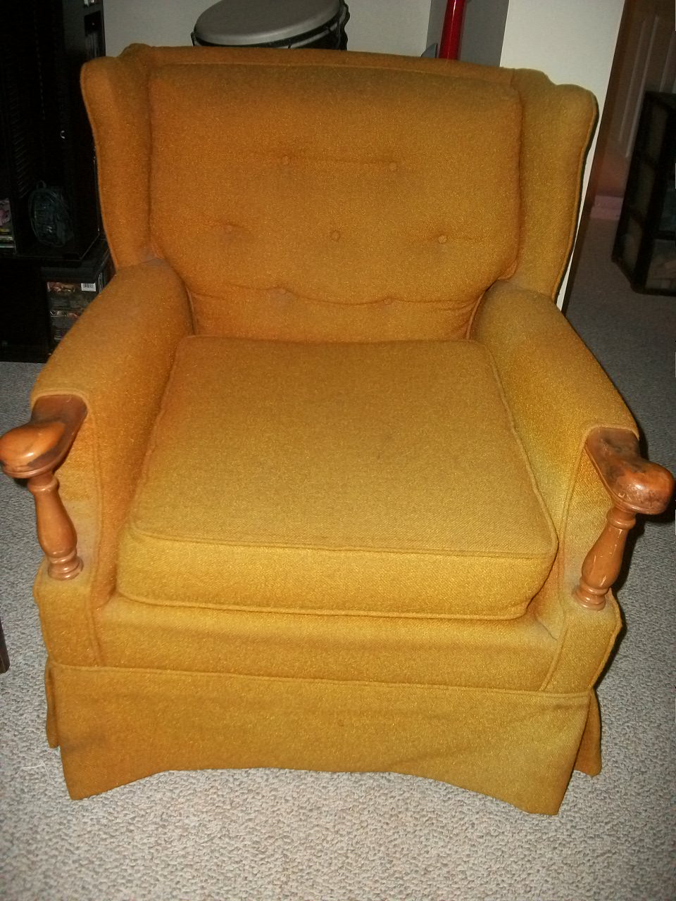 I have this orange wing back chair. It looks like it might be from the 70's. I need to know where it came from and if it is worth anything.the only markings on it are on the zipper on the cushion. It is a SERVAL zipper. I looked it up online and can't find much about SERVAL zippers or the company. The color now looks yellow because it has faded so much. Help?