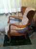 the flower print is all stitched into the fabric, the legs and all the trim wood appear to be hand carved very beautiiful niether piece has a tag or anyhing i can see to identify it. both pieces are made of same fabric and material