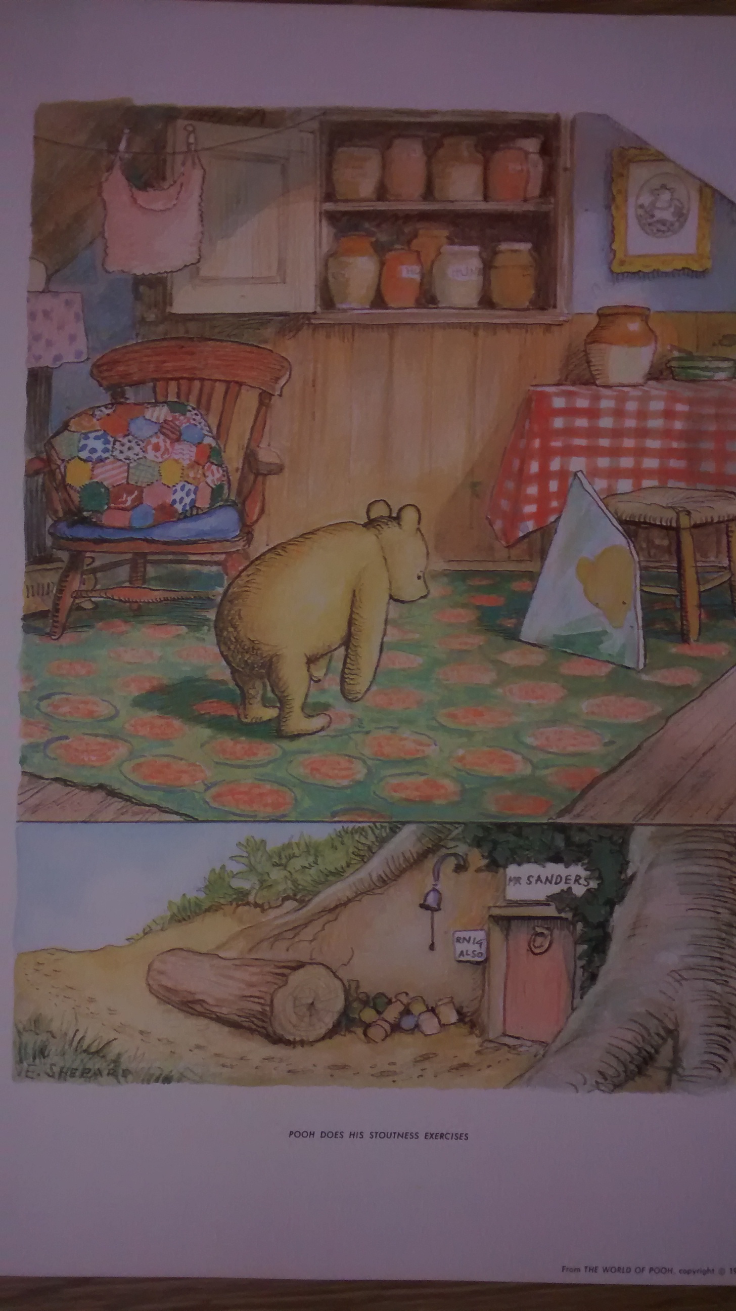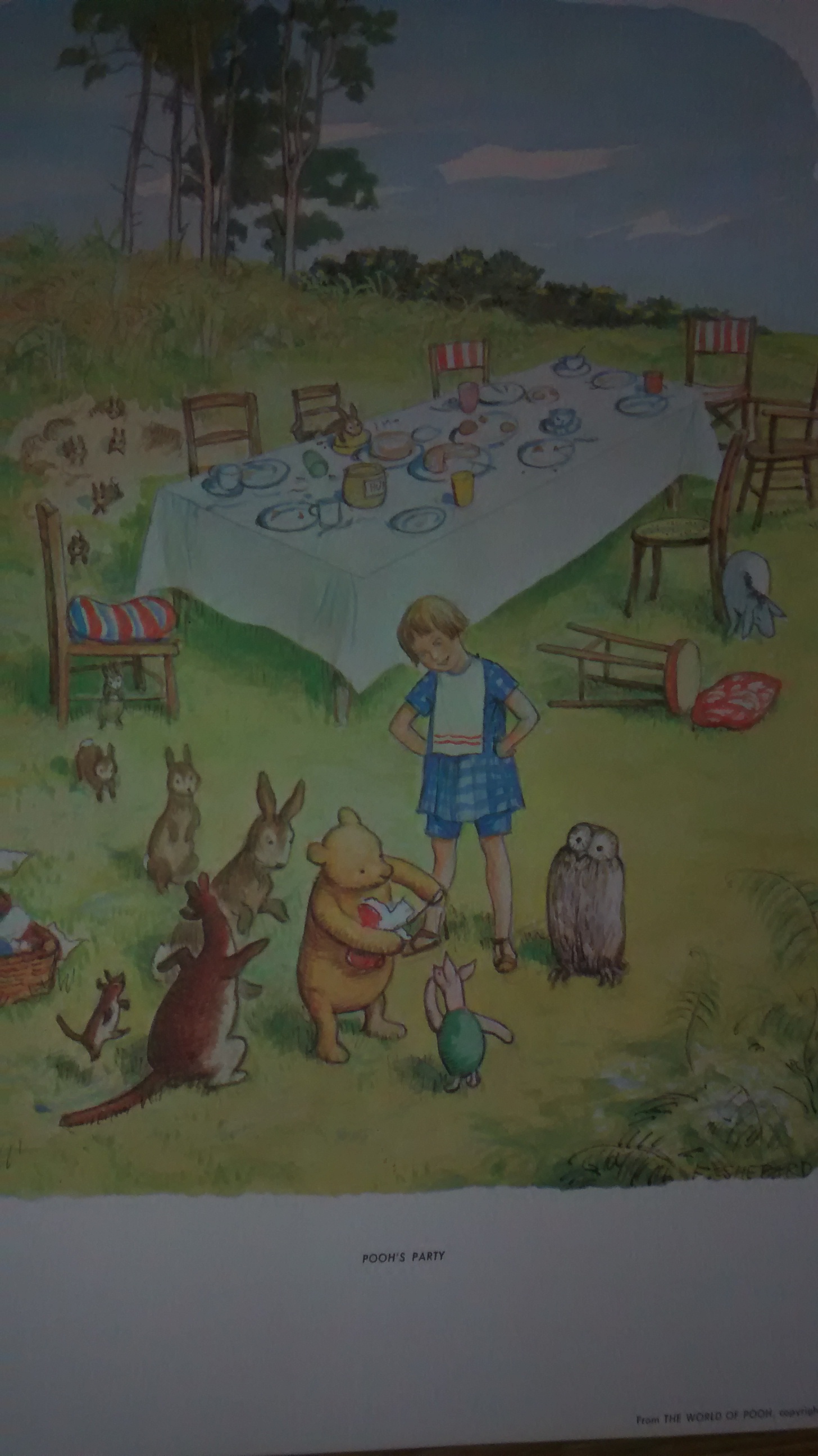 A box of Winnie the Pooh colour prints, In 1957, E.P. Dutton, Mr. Milnes's American Publishers, commissioned Mr. Shepard to paint the coloured pictures that appear in this portfolio. I have a box that has the price on it of $4.95 and identified as Pooh his Art Galley, the box has writing on the side, and is blank on the back, and further has all eight 28cm x 36cm original prints.