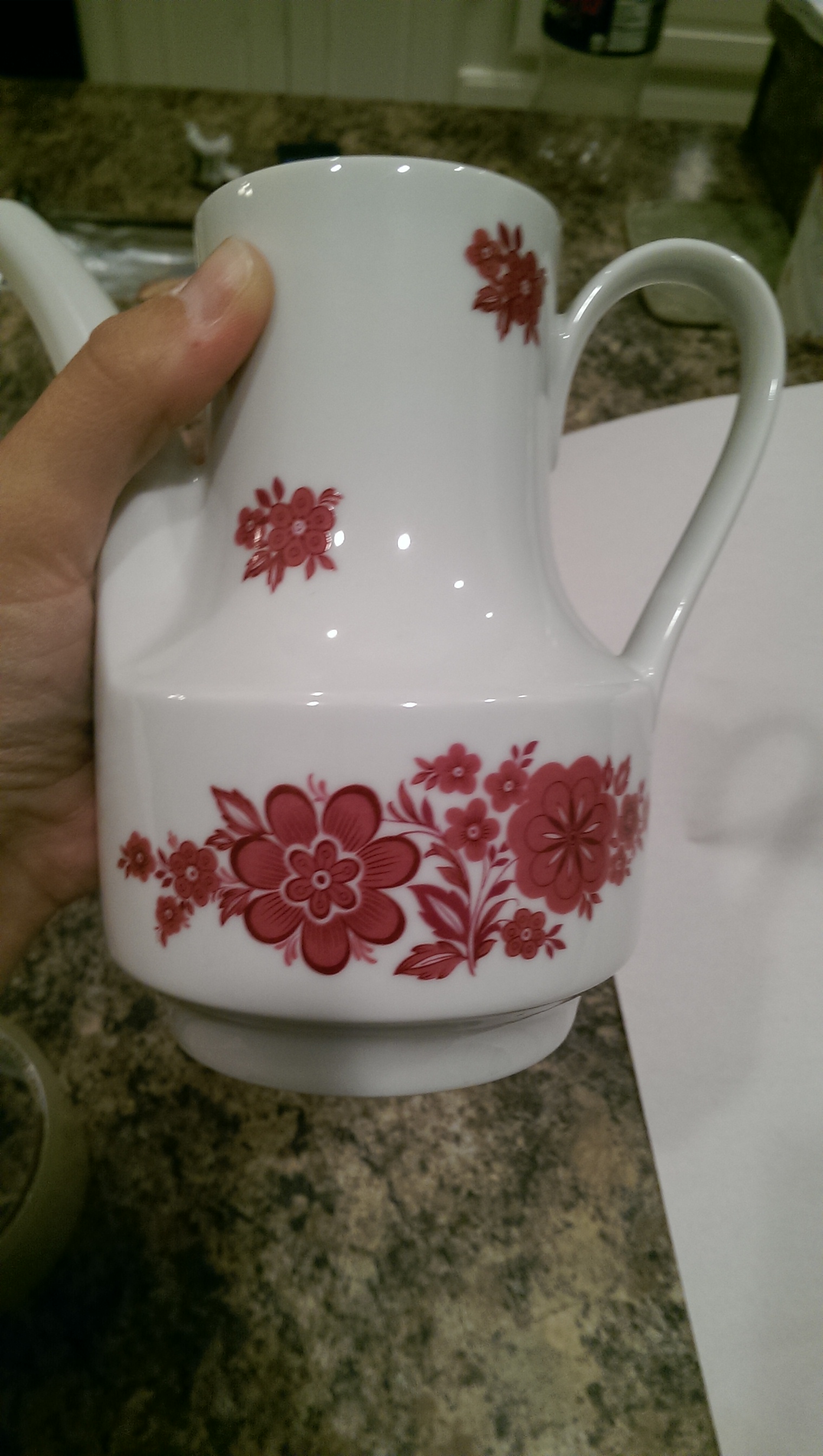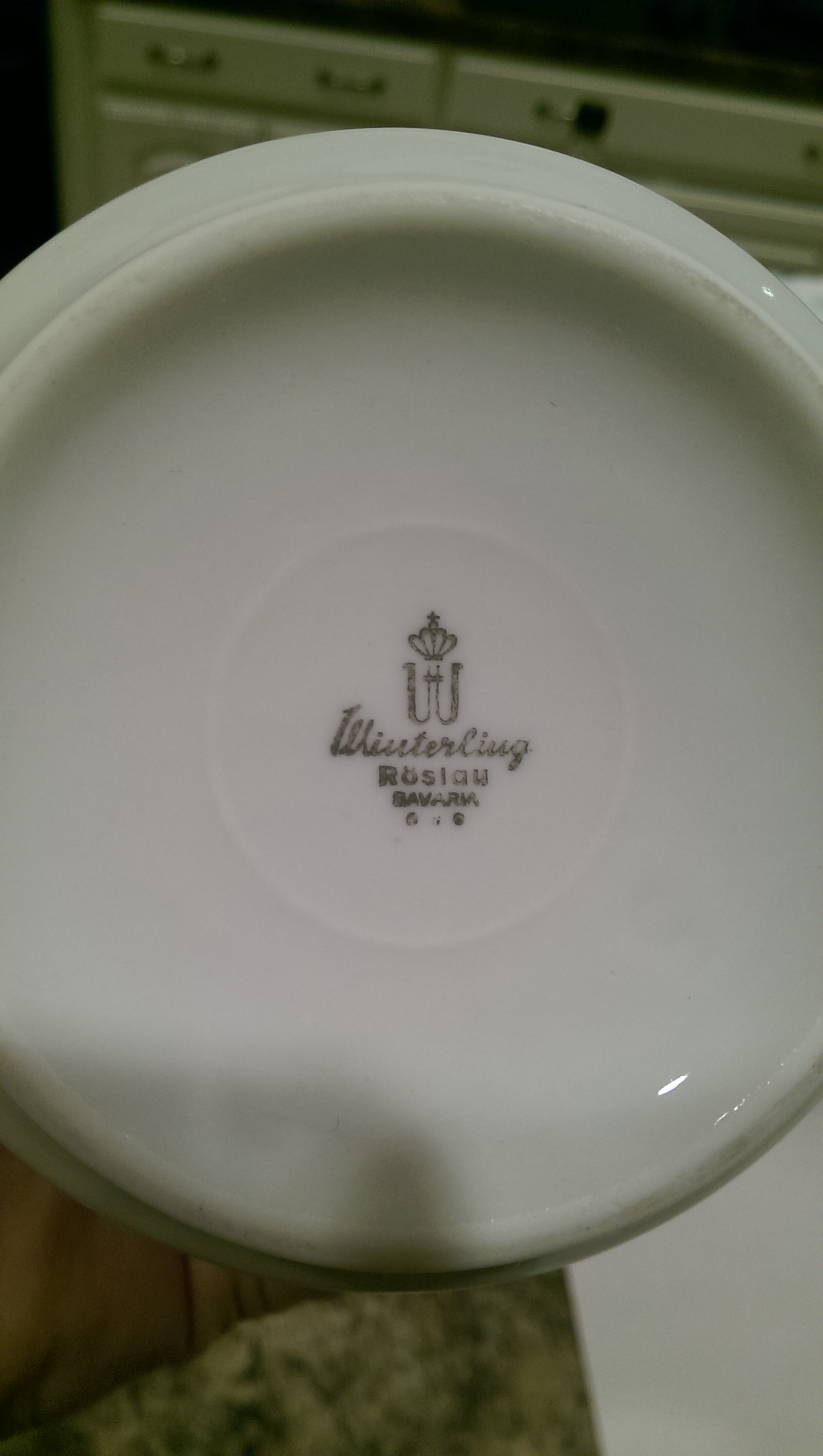 I inhereted this set from my mother who got them as a gift from her ex-husbands grandmother who lives in Germany. I have searched on replacements.com and cannot find a match for this pattern. I believe I have the complete set, teapot, creamer, sugar, small/large saucers, tea-cups, etc. They all have the stamp on the bottom that reads, "Winterling Roslau Bavaria" but no number or other identifying words.