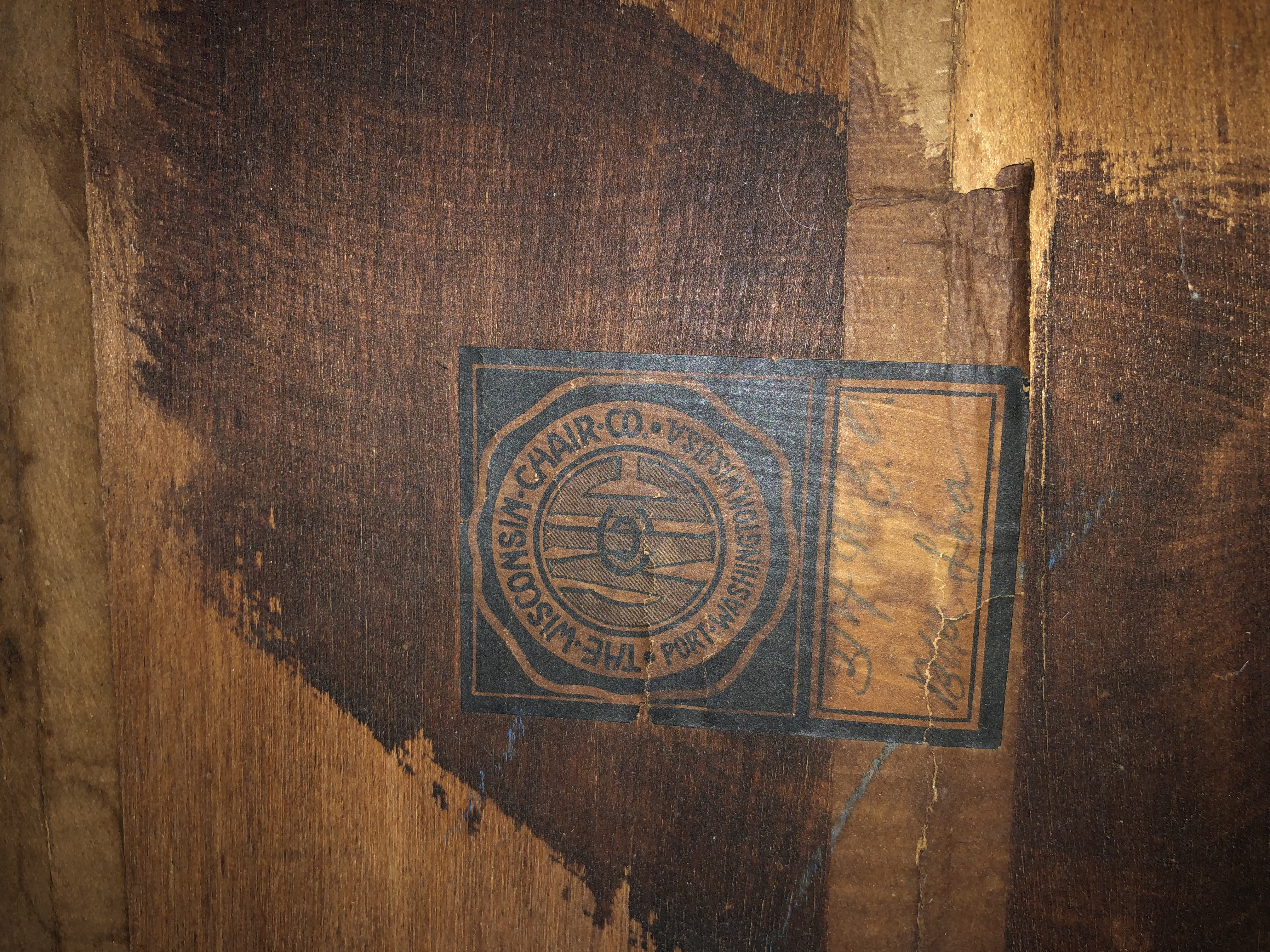 6 Dark Dull colored chairs style number 2051 made by Wisconsin Chair Company. In excellent condition - fabric seat covering worn but still intact