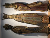 Two wisement that are a folk art type.  They were hand crafted by J. Austin in 1993.  I do not know where they were purchased as they were a gift from a friend 18 years ago.  Only two have managed to survive over the years.  The faces have much detail and feel like ceramic but are not.  Clothing is made of cheesecloth type material.  Base is on chunk of tree wood.  Both figures are signed on bottom.