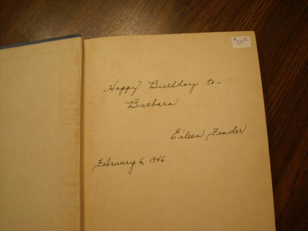 The book has a blue cover that is made out of a canvas like material. On the first page there is an inscription that reads "Happy Birthday to Barbara Eileen Fender February 6, 1946". The book is in excellent condition, there is no tears or smudges on any papers, the words look as if they were printed yesterday absolutly no fading of any kind. It is still bound tightly as if it has hardly been opened. When I received the book I put it in a case and never to it out. It was copyrighted in 1944 by The Bobbs-Merrill Company and I believe it is a 4th edition. Im only guessing at this because it has 3 copyright dates and the 1944 is the last one listed. I've enclosed a picture of the cover and some of the pages. Please let me know what you think. Thanks.
