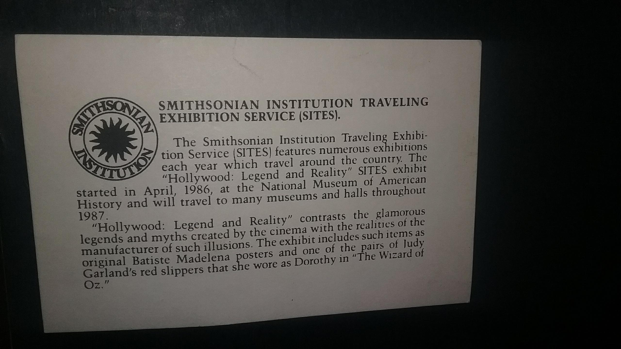 Smithsonian Institution Traveling Exhibition Service (SITES) sticker on the back