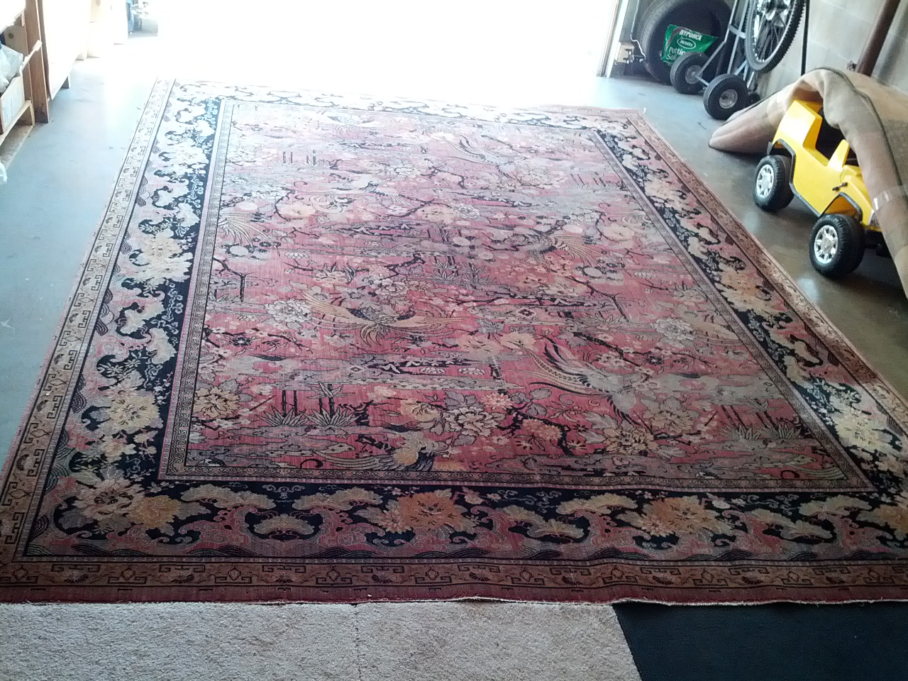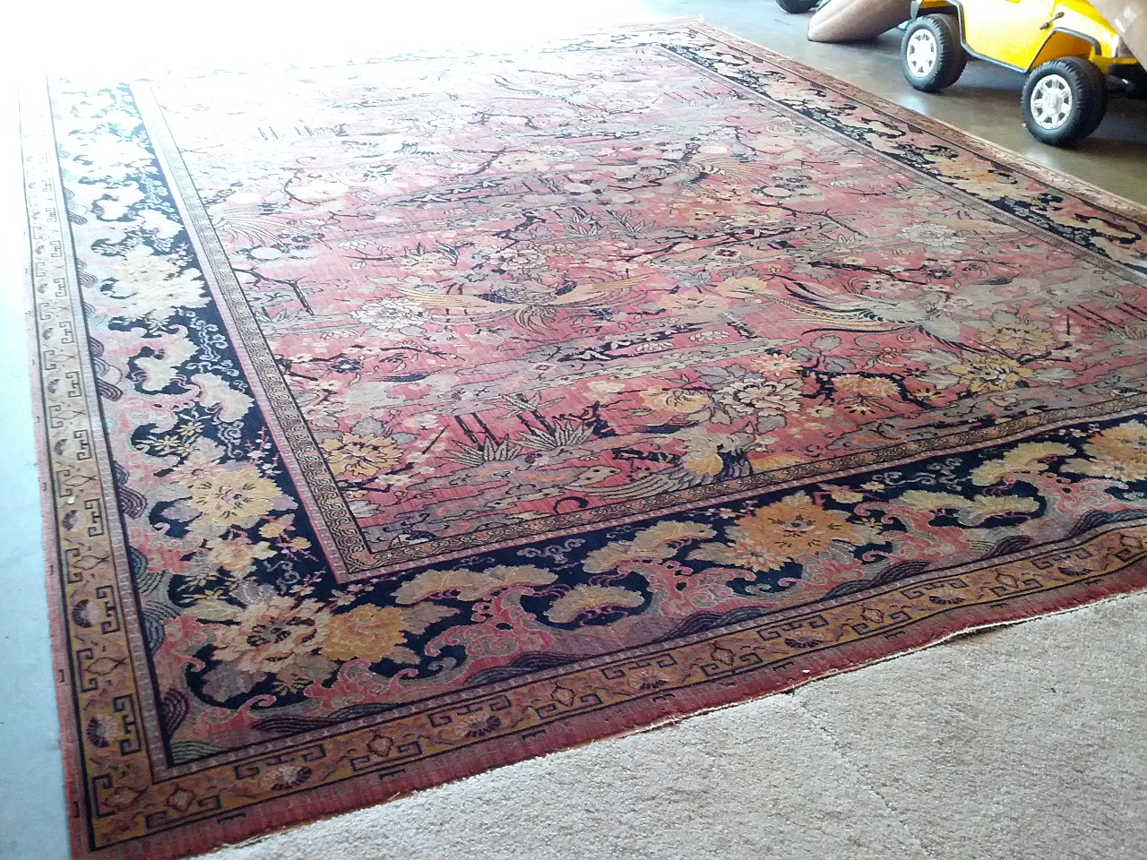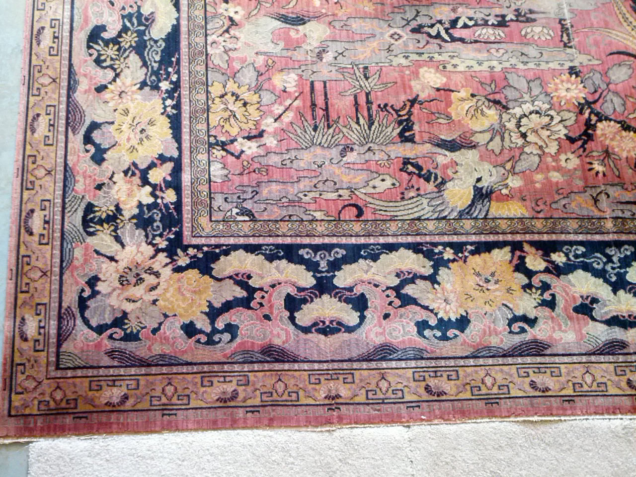 There are some parts that are thinned out and fringe was taken off. over all condition is good.
