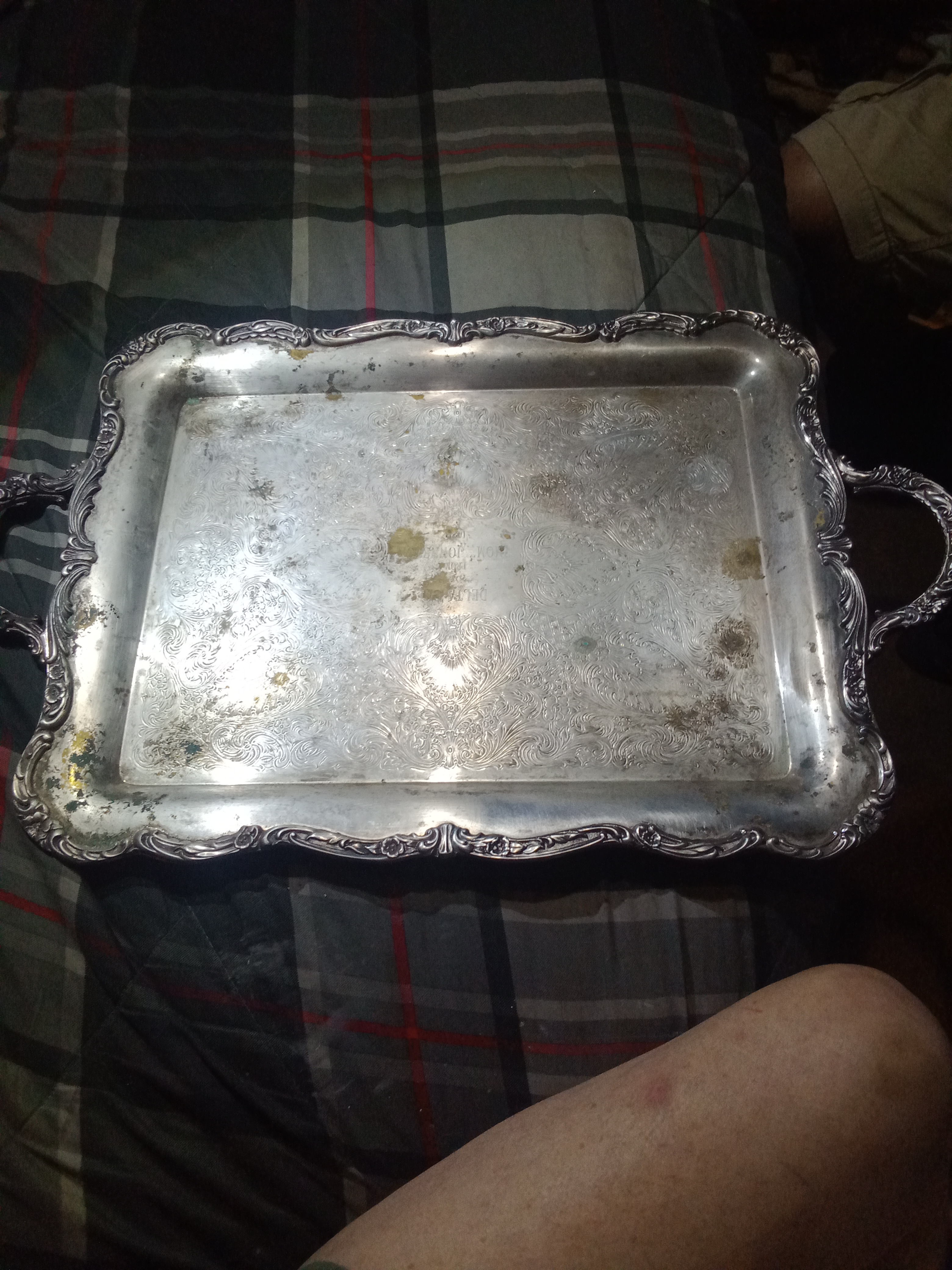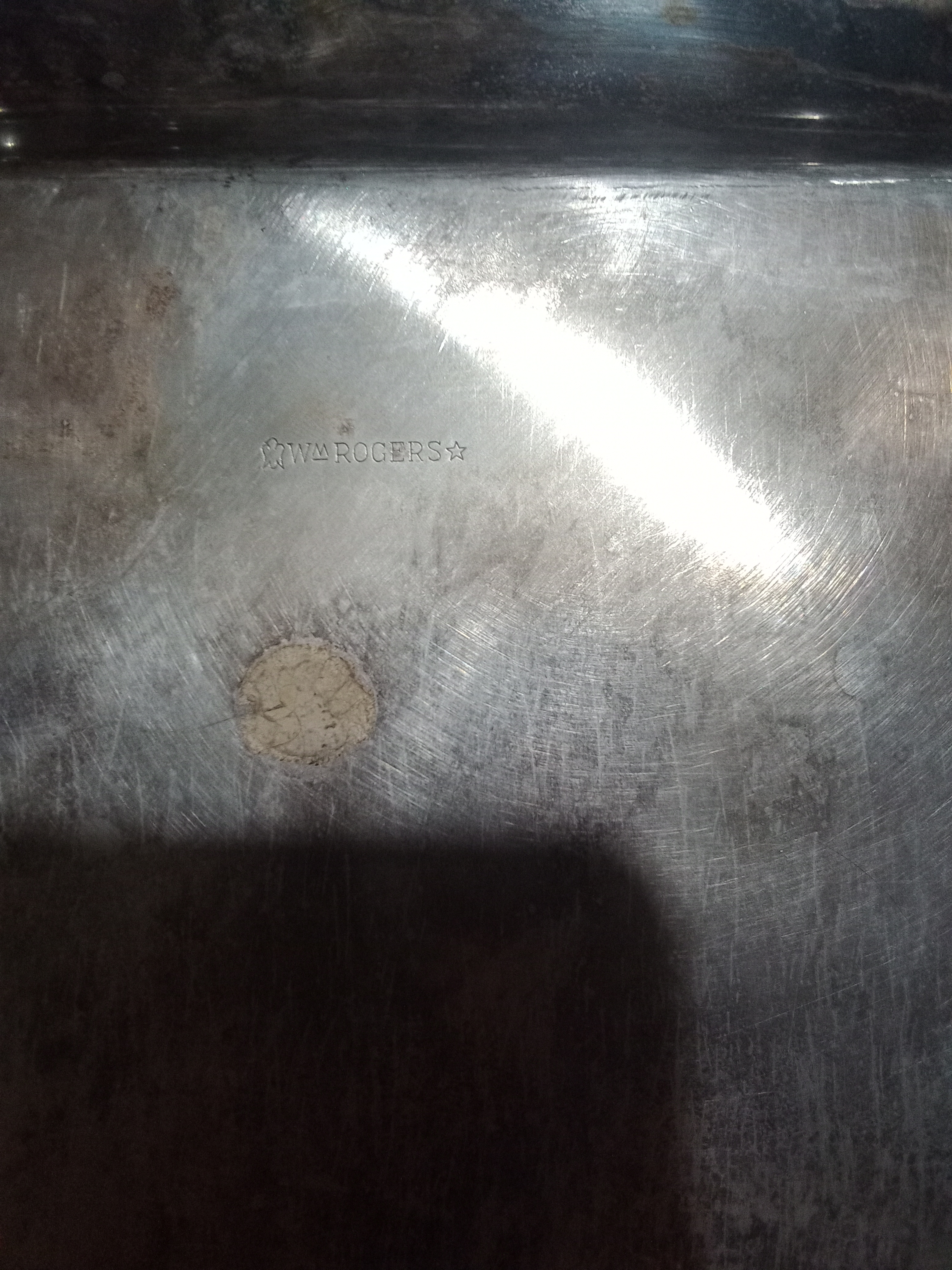 Wm Rogers serving tray with bird symbol in front and a star at end