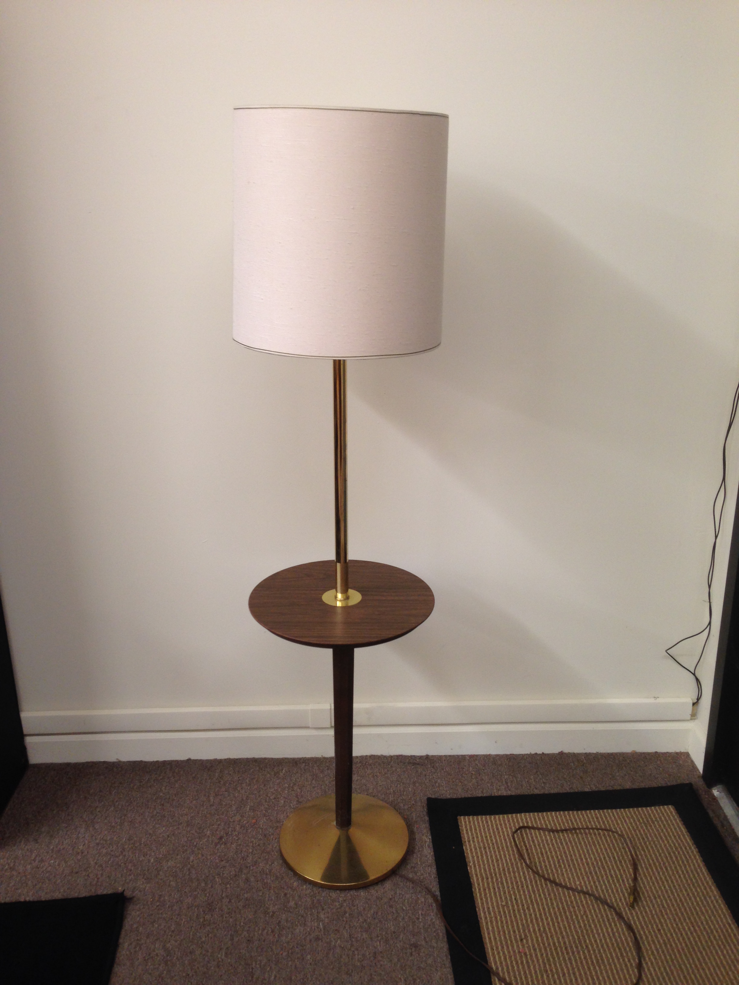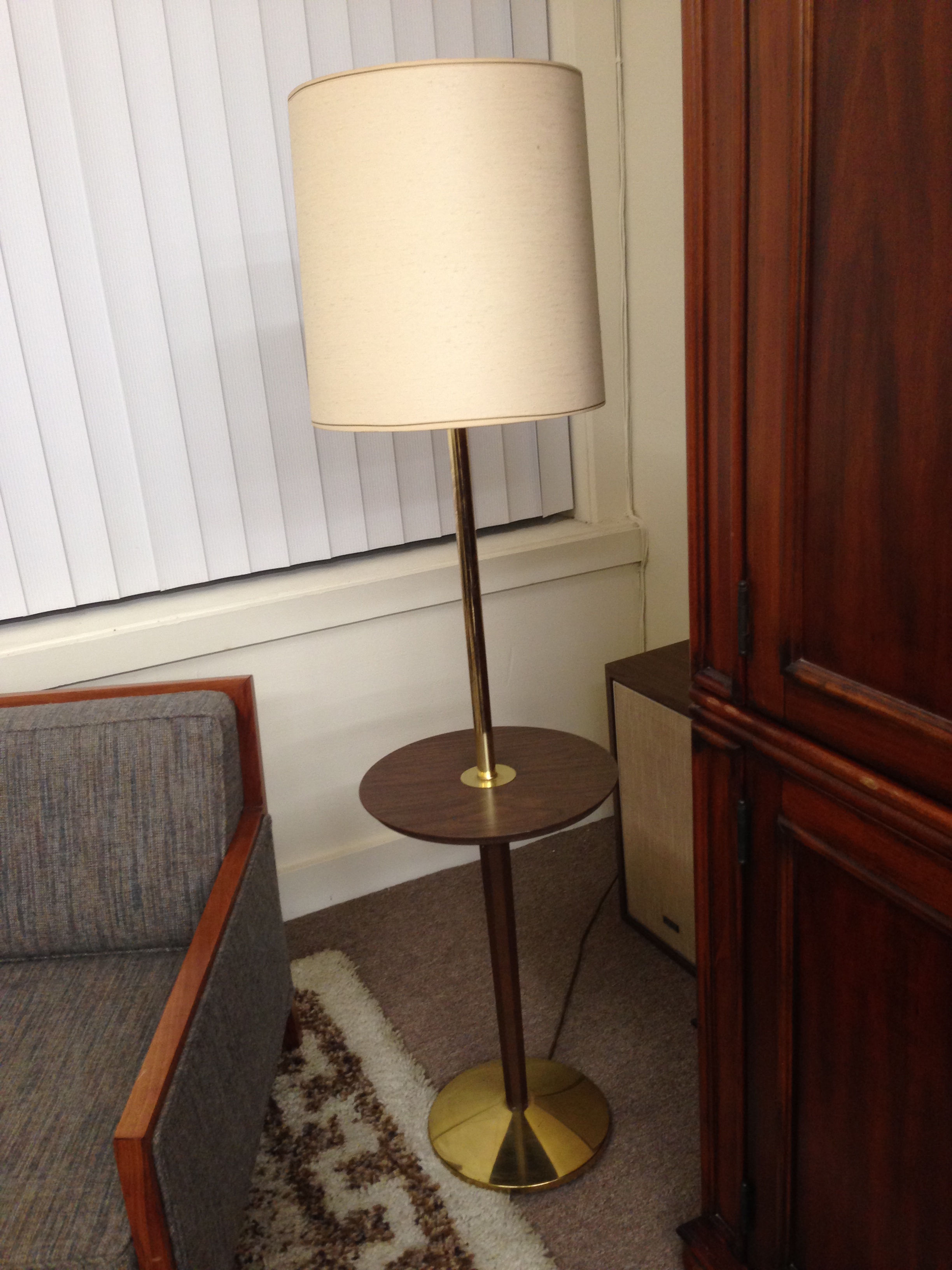 Vintage modern lamp with built in table made of brass and wood.
