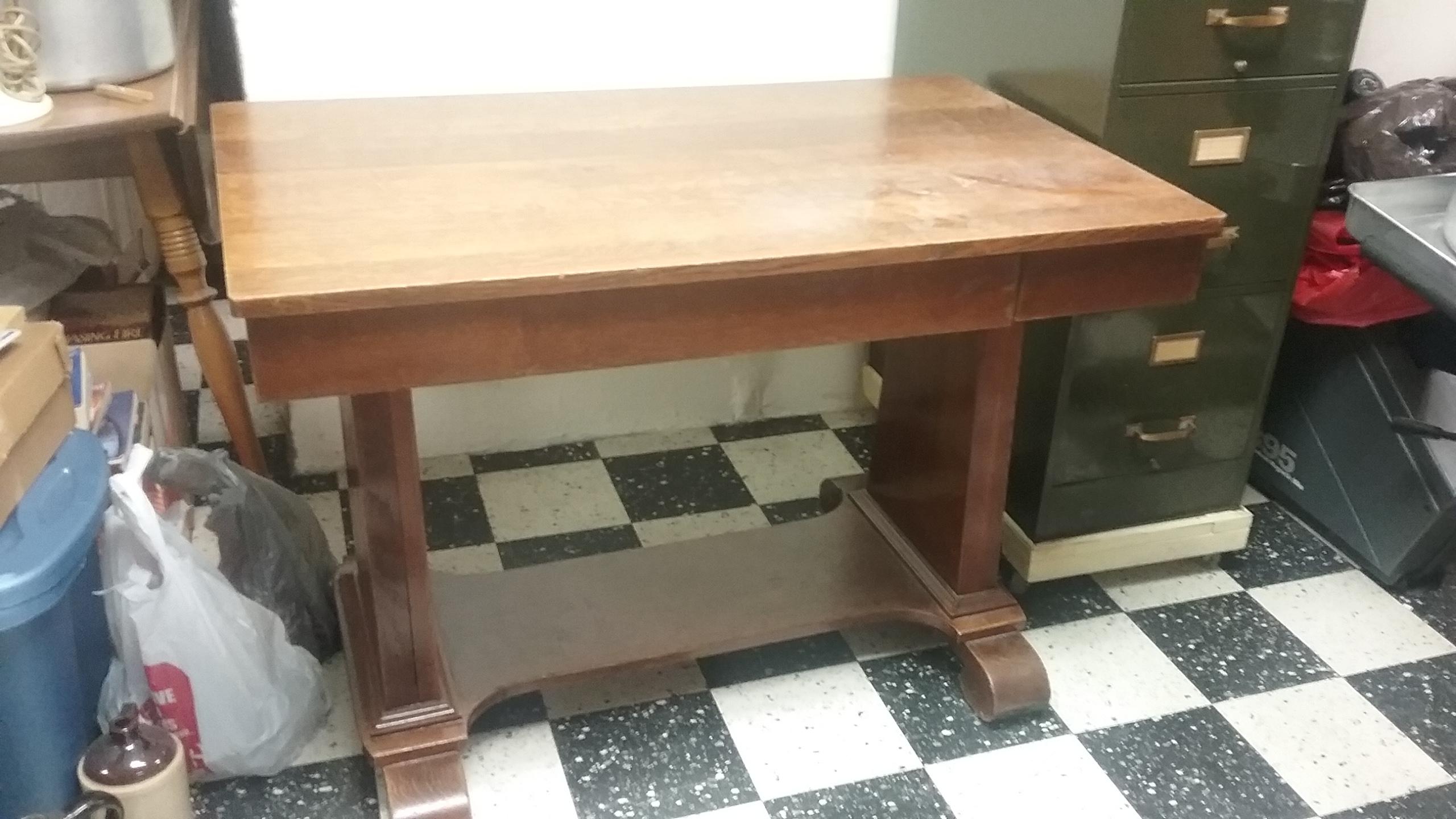This was My great uncles. Found in my mother's basement. My mother was 92 when she passed. I believe it it well over a 100 years old. 26" x 42" Bottom of drawer is cracked. Don't know much else about it.