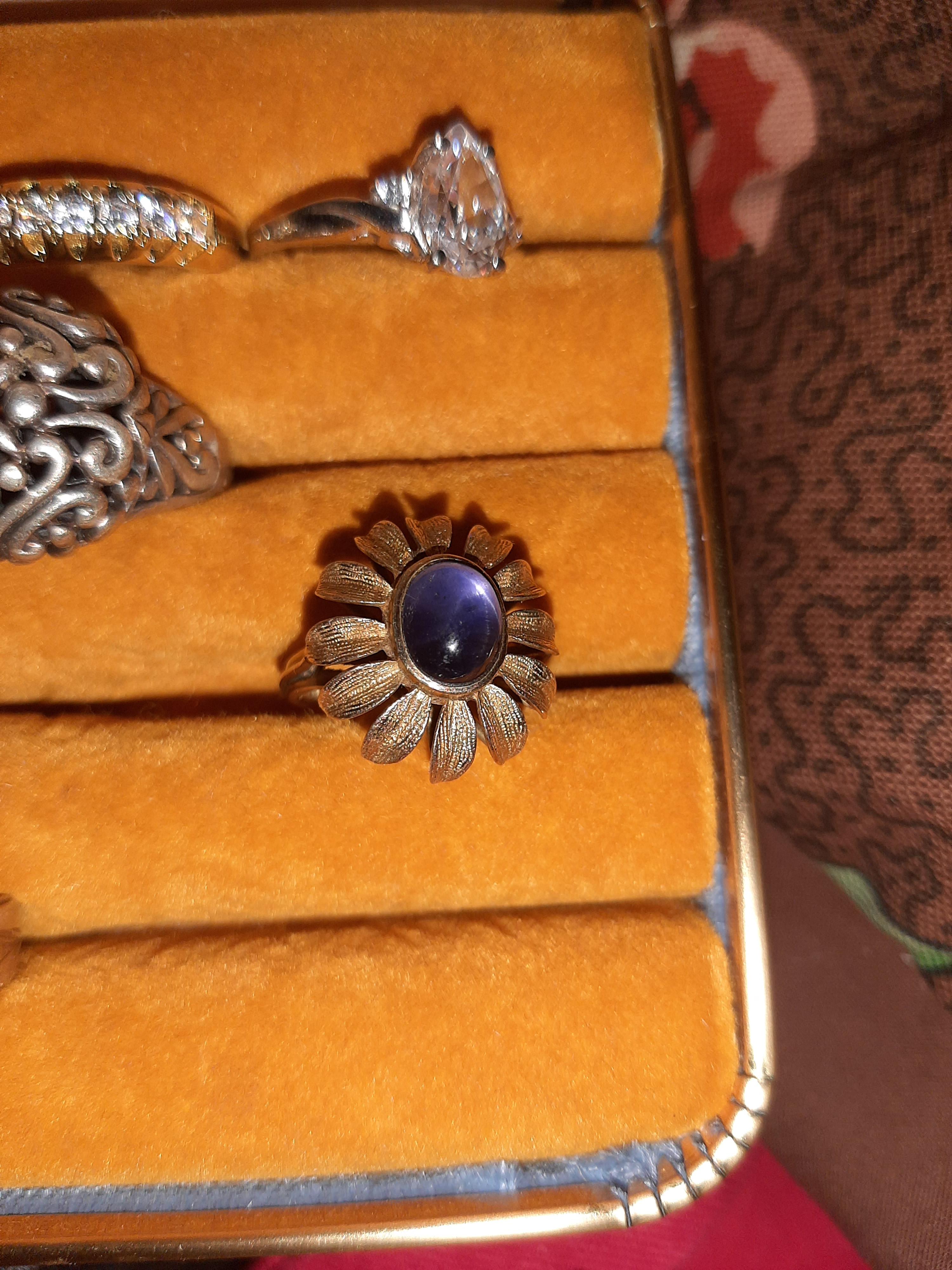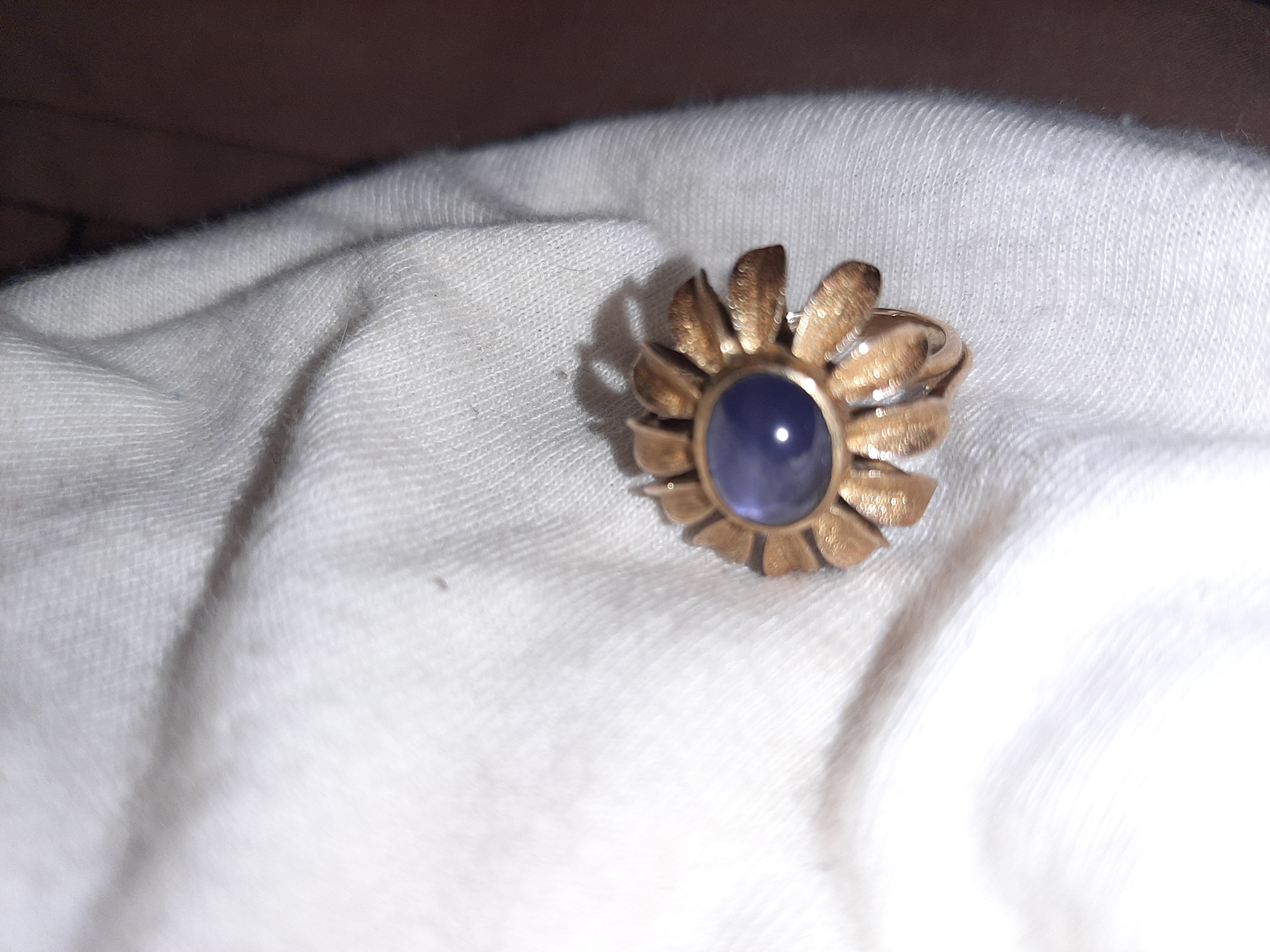It Hass been in our family for some time now all I have found out by searching is it could be a cabochon sapphire 18k yellow gold which it says 18k inside of the ring