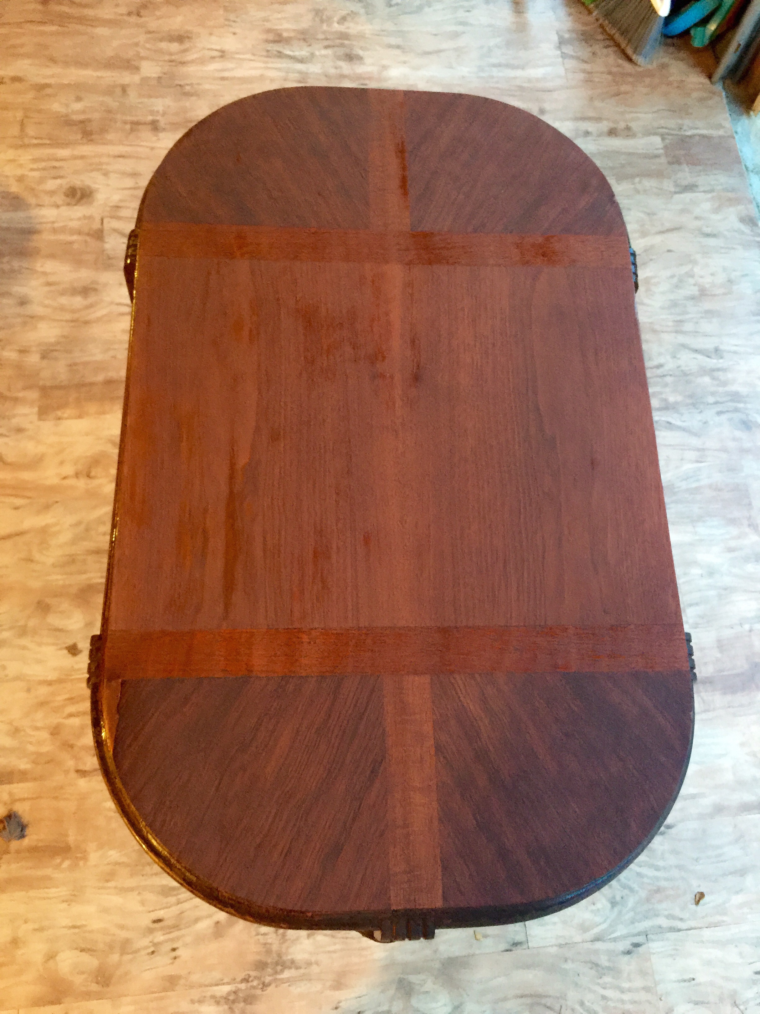 Amazing wood table.   I know it's old but not not sure how old.  The screws