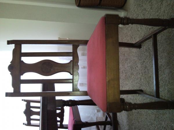 Wood and upholstered straight-back chairs