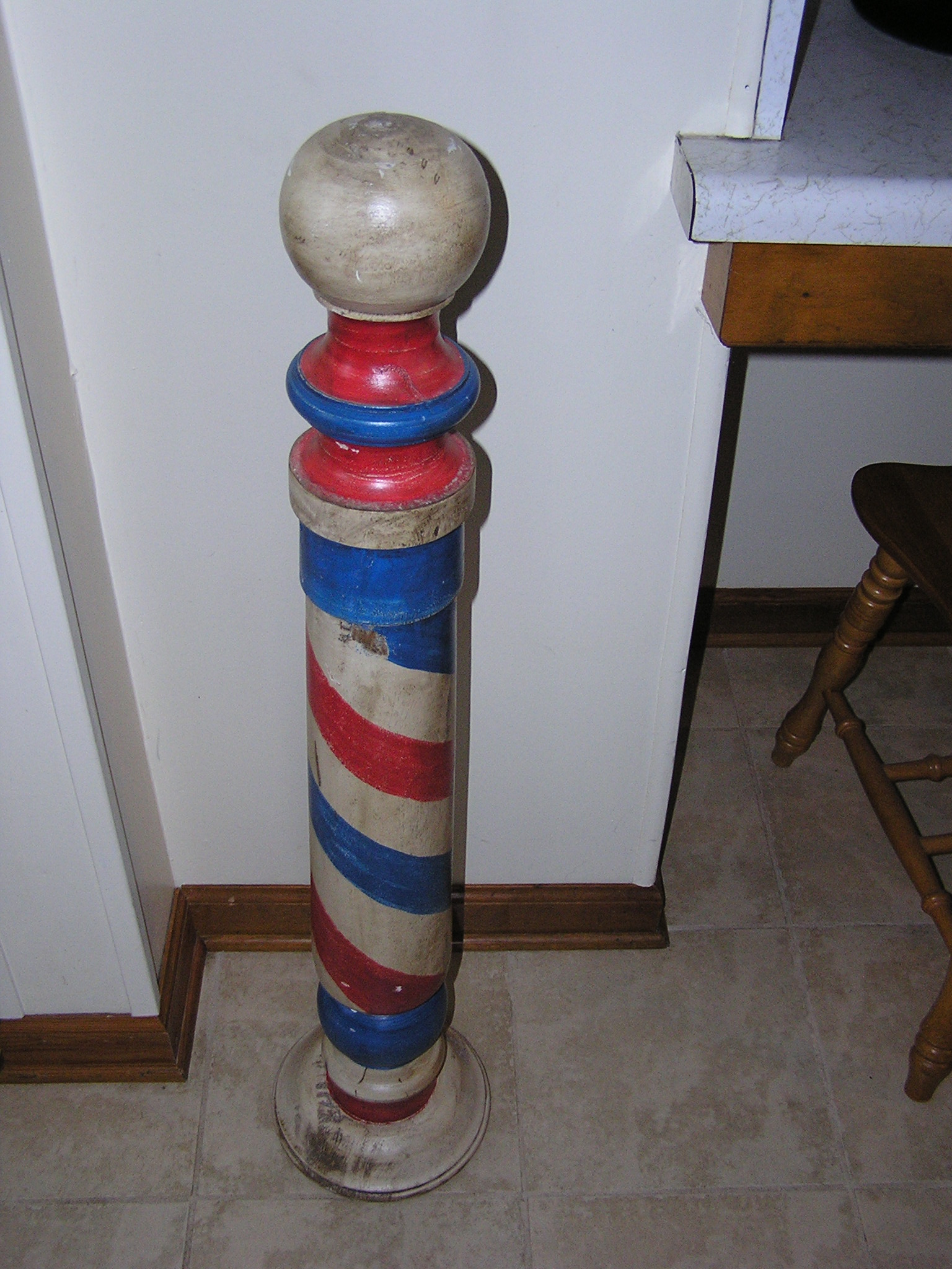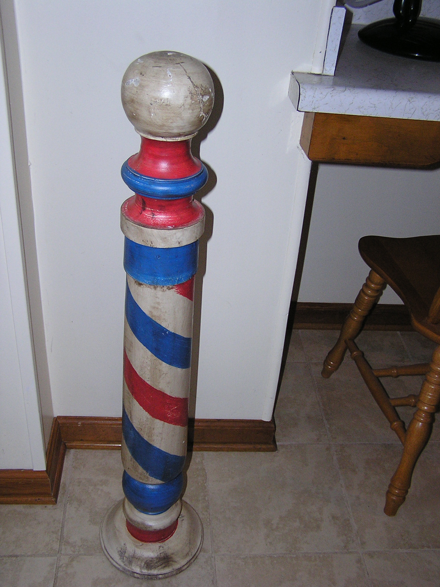 The Barber pole is 38 inches tall and does have a crack in the top. It is in good condition and wieghs 11 lbs. Any information will be appreciated.